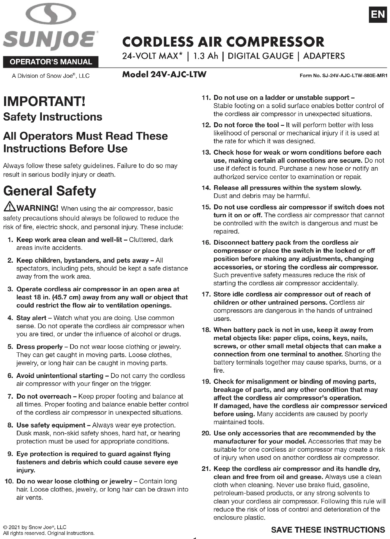 © 2021 by Snow Joe , LLCAll rights reserved. Original instructions.