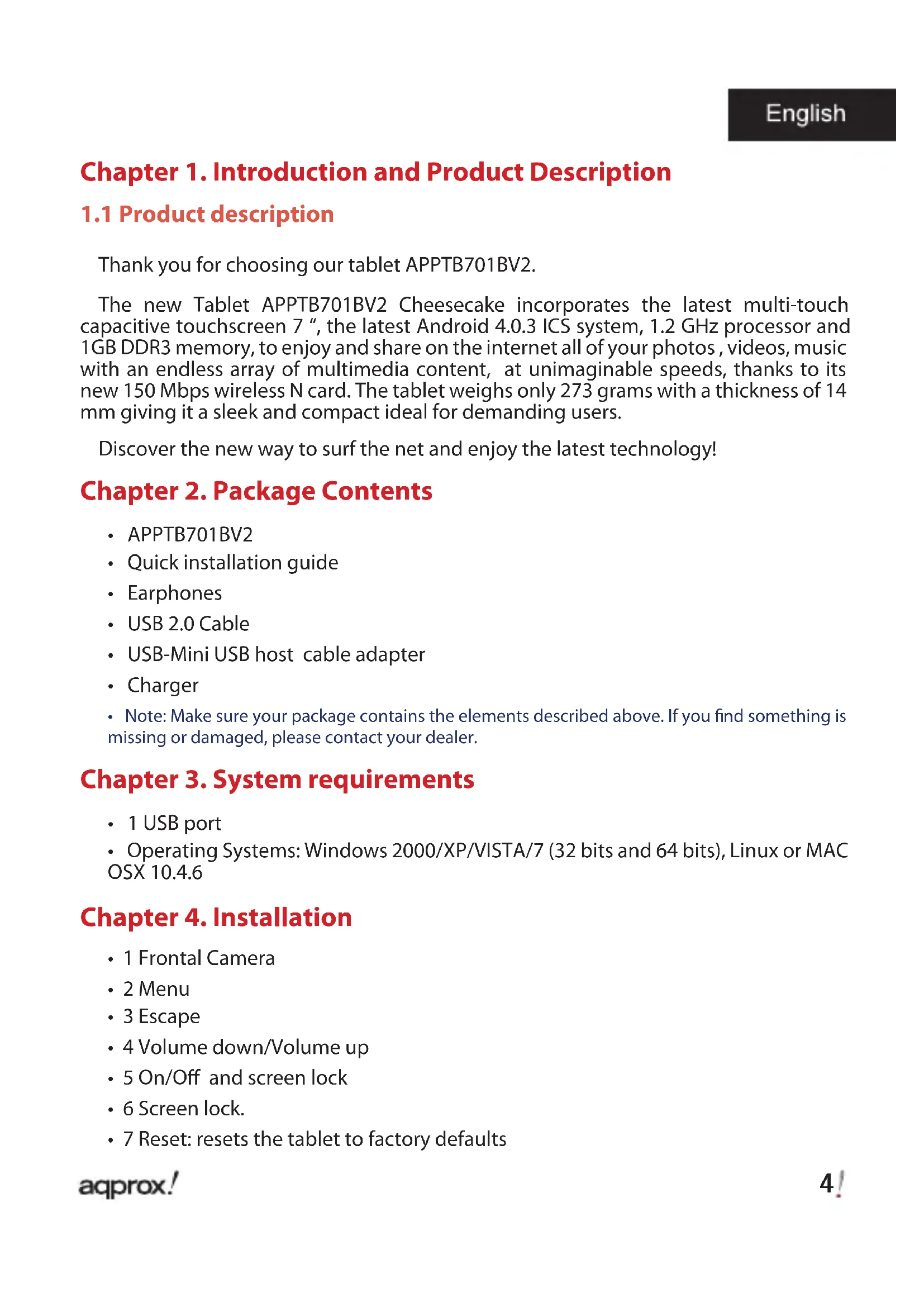 Find the device manual for free appTB701BV2 Aqprox in PDF.