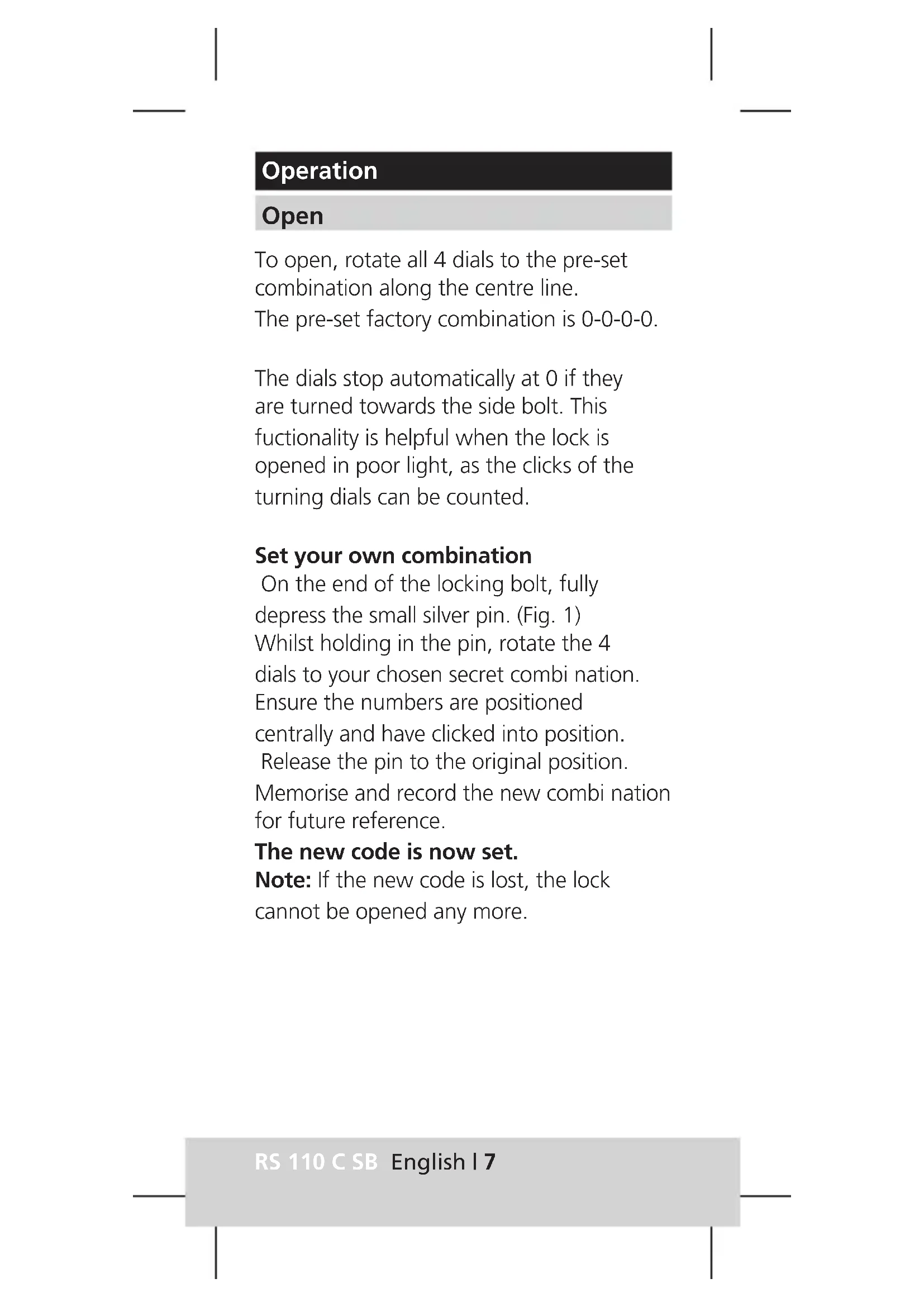 RS 110 C SB - Serrure à combinaison Burg Wächter - Free user manual and instructions