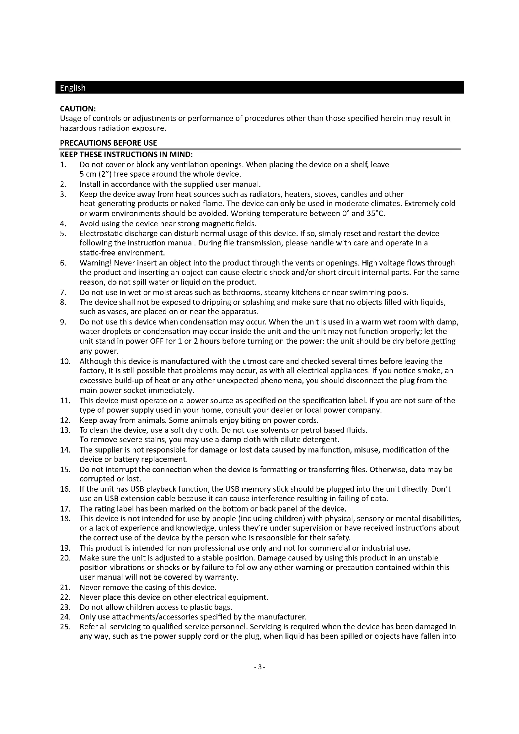 25. Refer all servicing to qualified service personnel. Servicing is required when the device has been damaged in