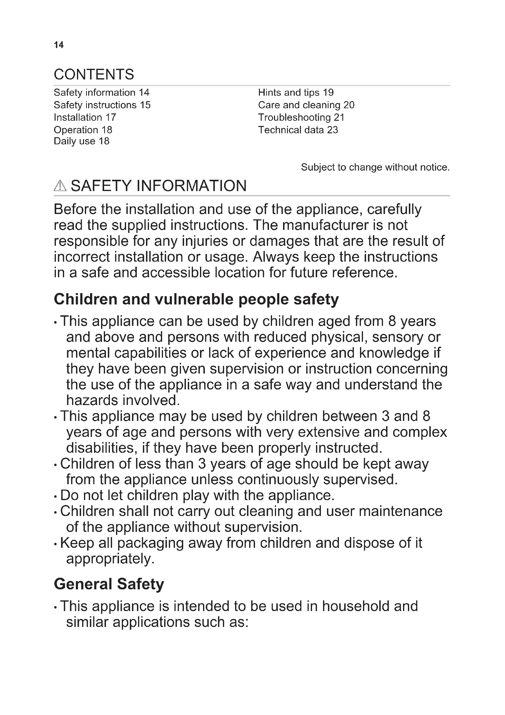 - This appliance may be used by children between 3 and 8 years of age and persons with very extensive and complex disabilities, if they have been properly instructed.