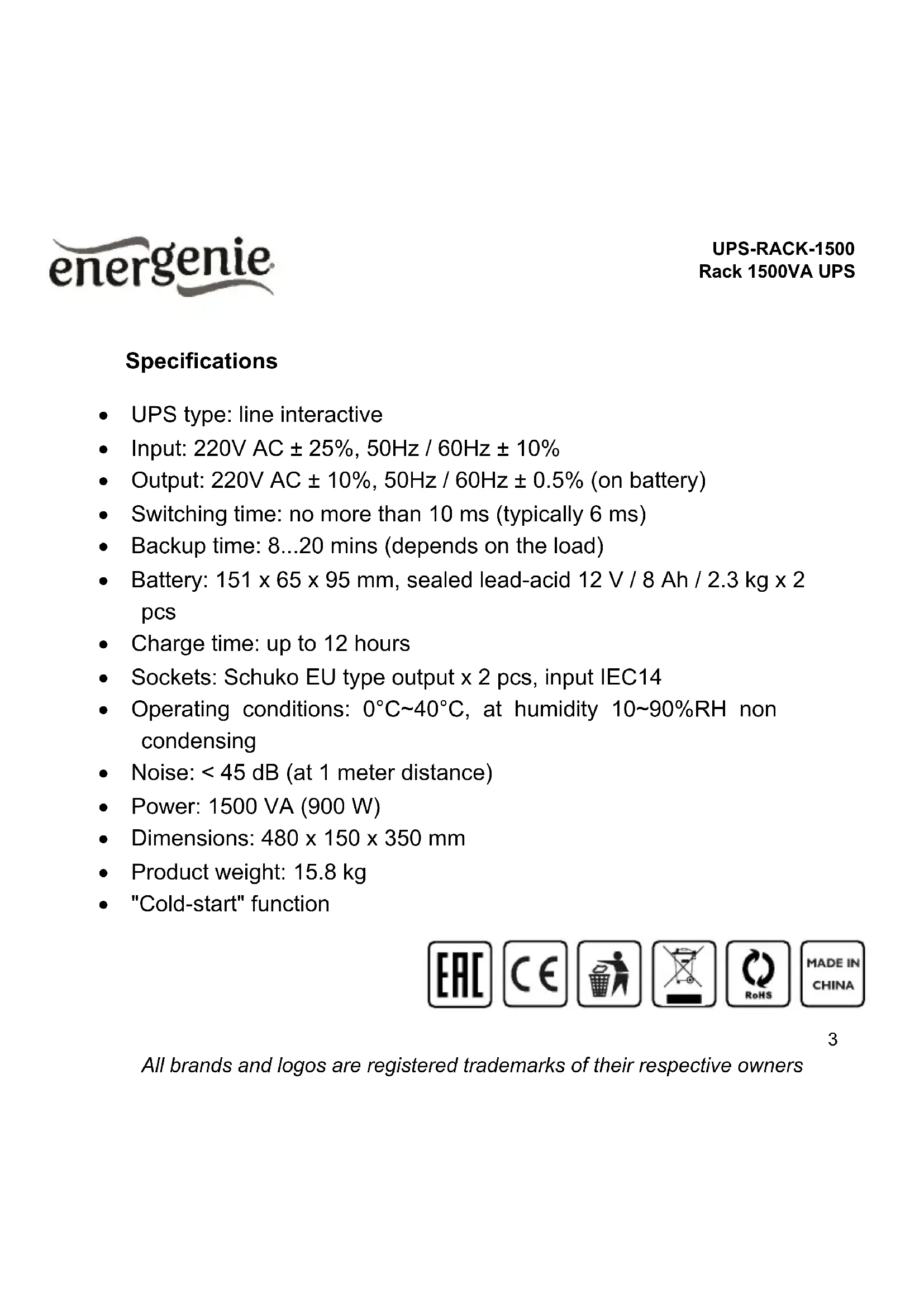 UPSRACK1200 - Uninterruptible power supply EnerGenie - Free user manual and instructions