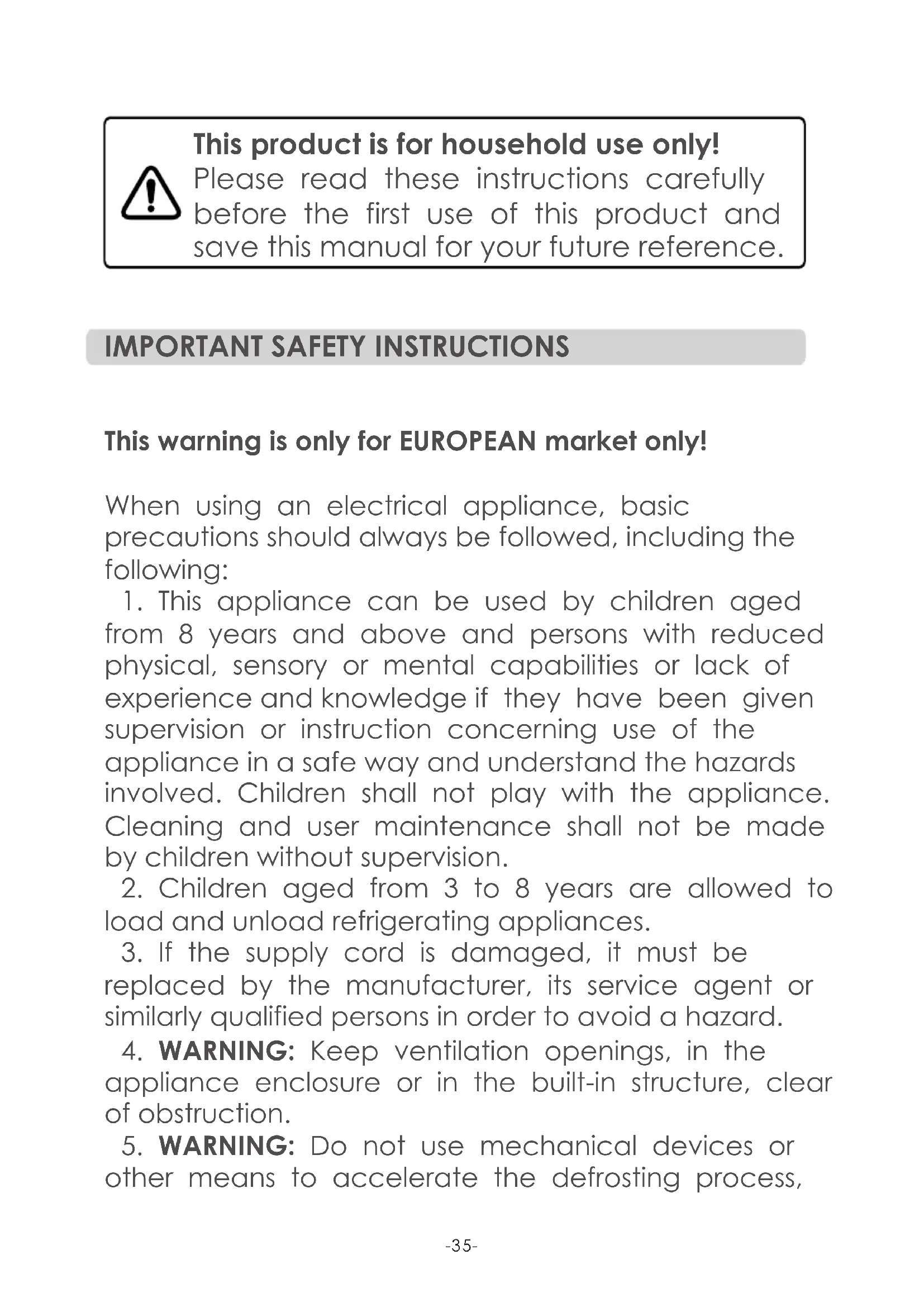 other means to accelerate the defrosting process, -35-o t h e r t h a n t h o s e r e c o m m e n d e d b y t h e manufacturer.
