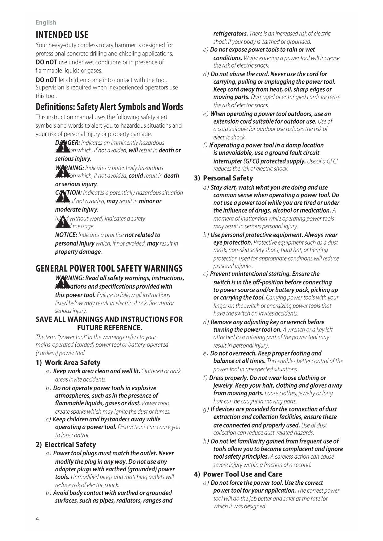 4) Power Tool Use and Care
