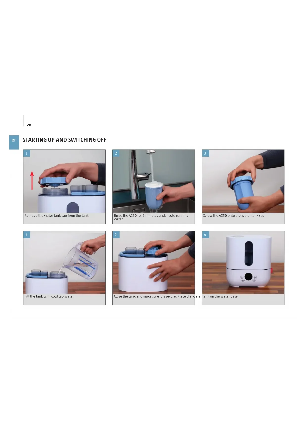 Please observe the accompanying manual for starting up the A250.