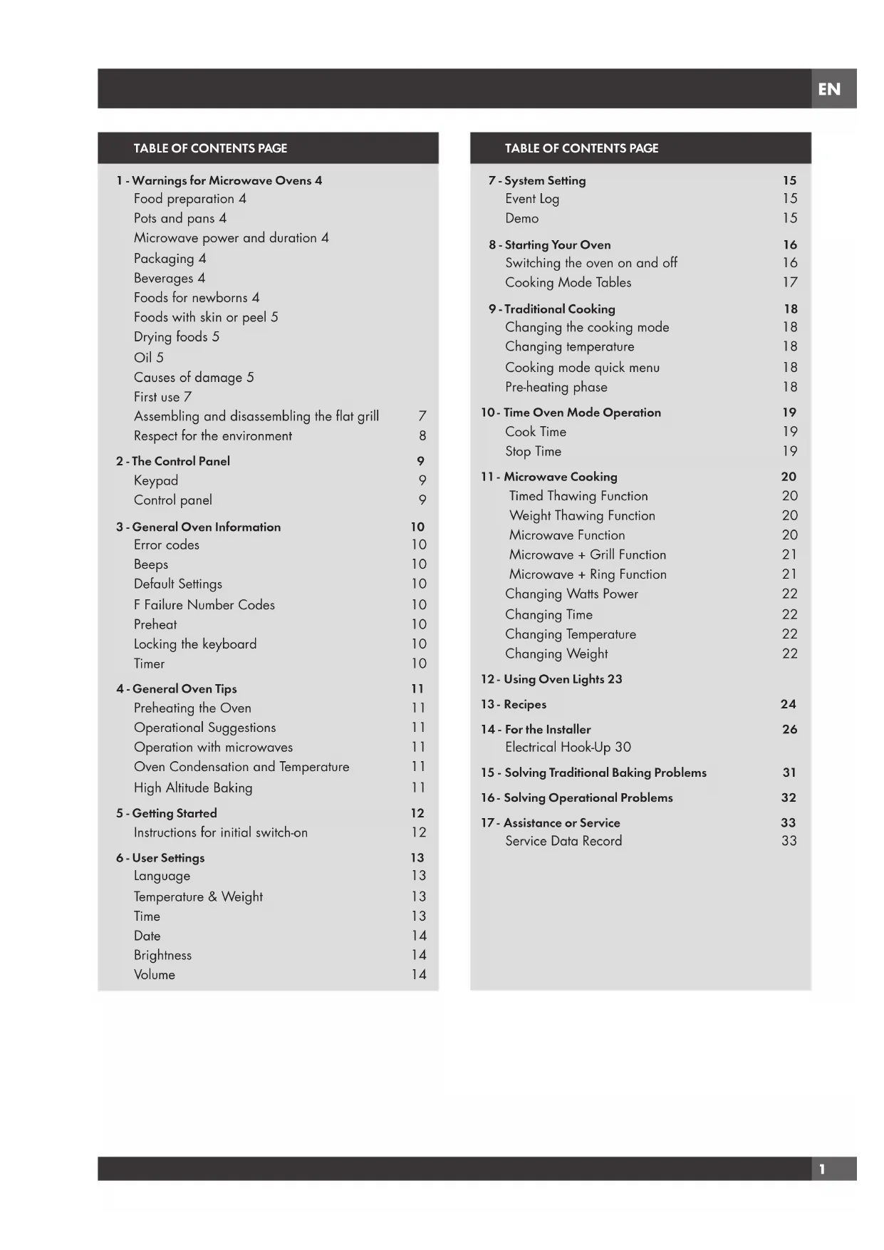 1 - Warnings for Microwave Ovens