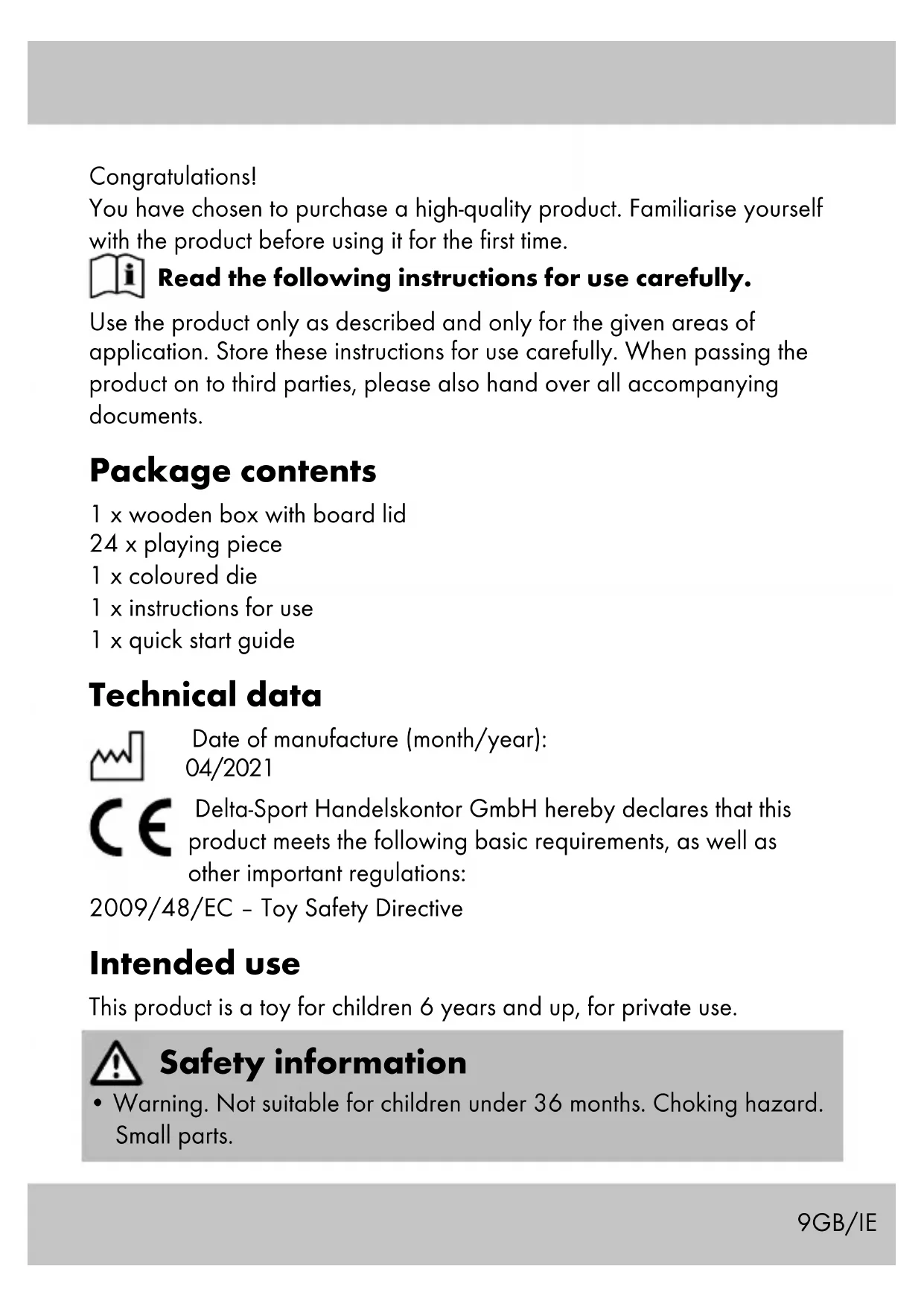 - Check the product for damage or wear before each use. Only use the product if it is in perfect condition! Game instructions Game for 2–6 players Game set-up
