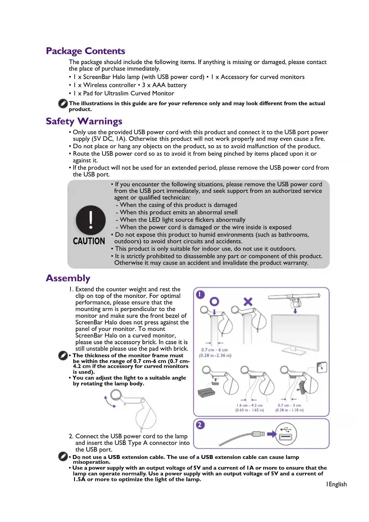 - 1 x ScreenBar Halo lamp (with USB power cord) • 1 x Accessory for curved monitors