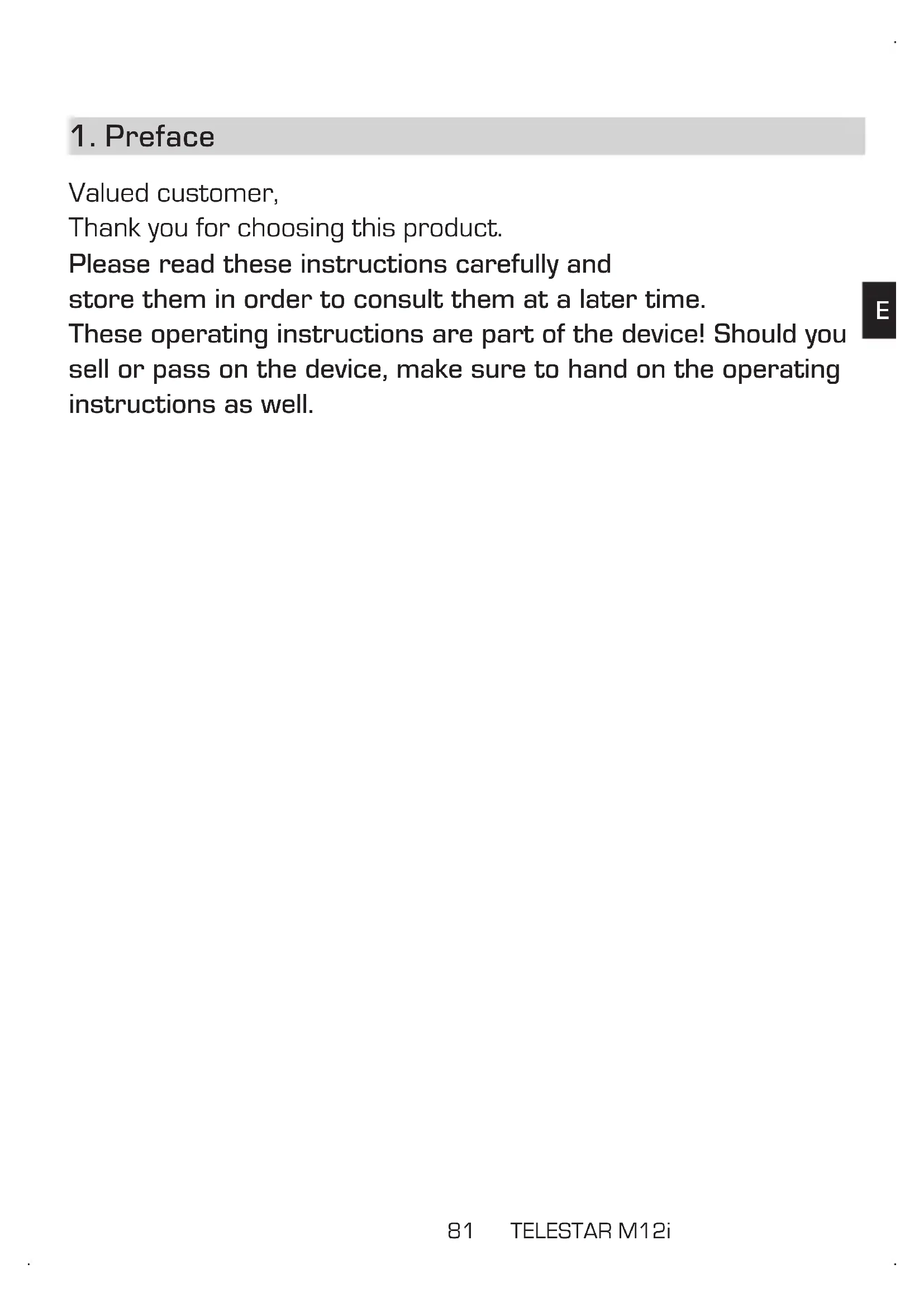 The warranty period of the TELESTAR M12i corresponds to the legal stipulations at the time of purchase.