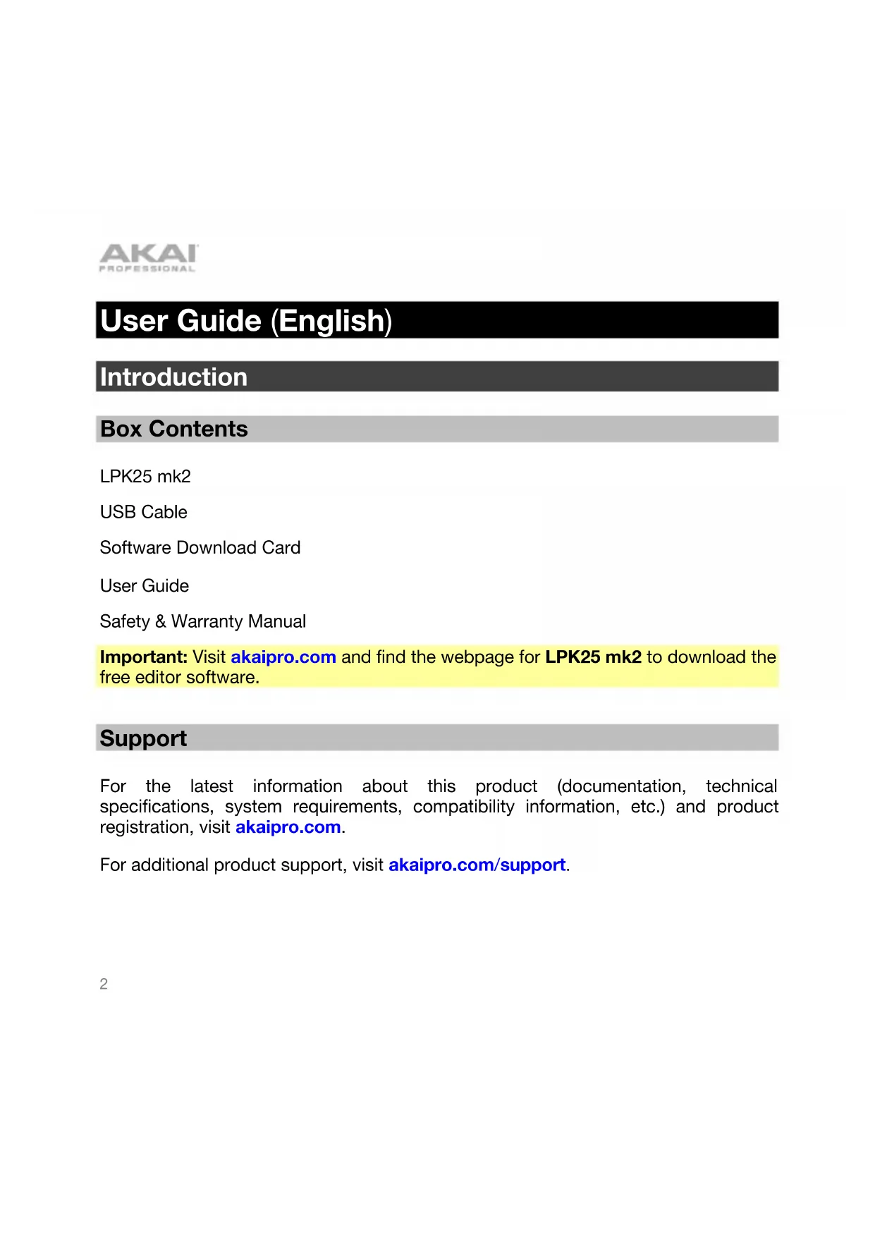 LPK25 Mk2 - Keyboard AKAI - Free user manual and instructions