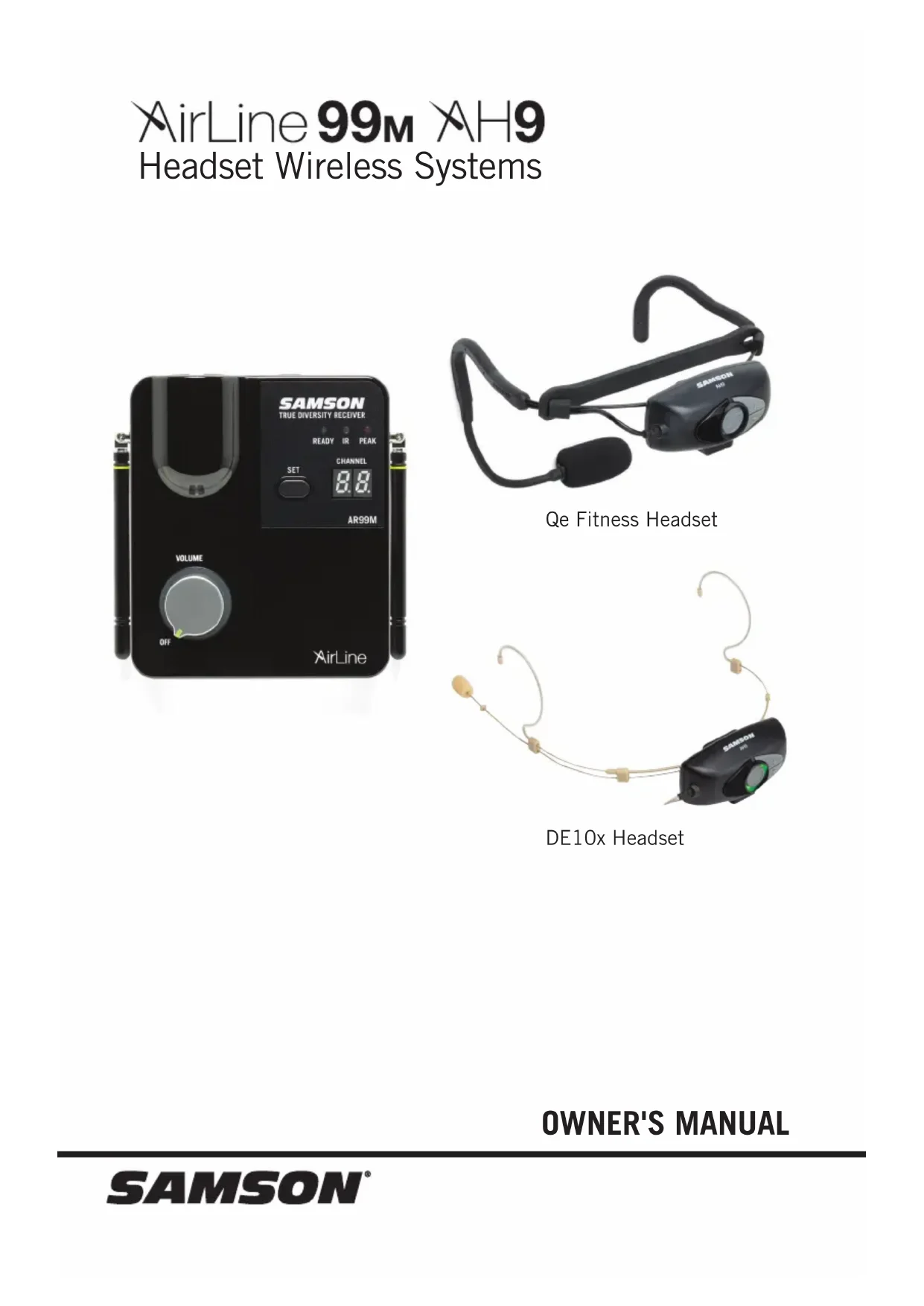 OWNER'S MANUAL Headset Wireless Systems Qe Fitness Headset DE10x HeadsetCopyright 2019, Samson Technologies Corp V4 This product is covered by the US patent: US9,602,053 Samson Technologies Corp. 278-B Duffy Ave Hicksville, NY 11801 www.samsontech.comAirLine 99m Wireless System 3