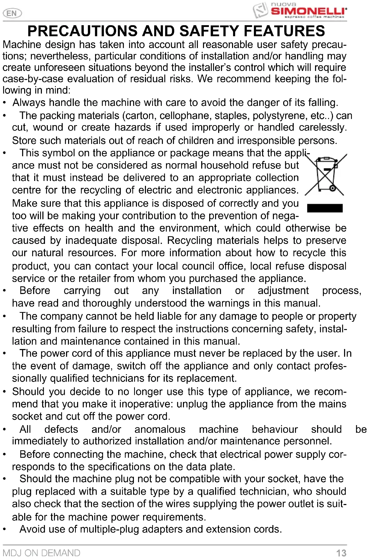 Find the device manual for free MDJ OnDemand NUOVA SIMONELLI in PDF.