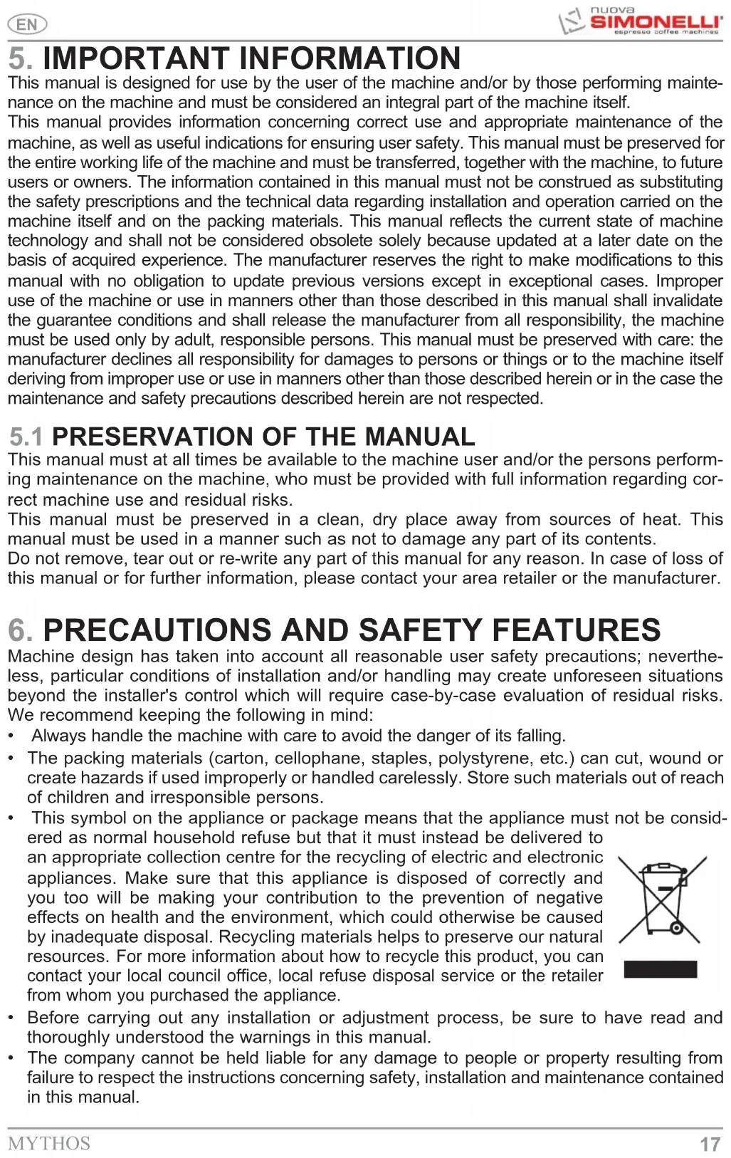 USER MANUAL Mythos 1 NUOVA SIMONELLI