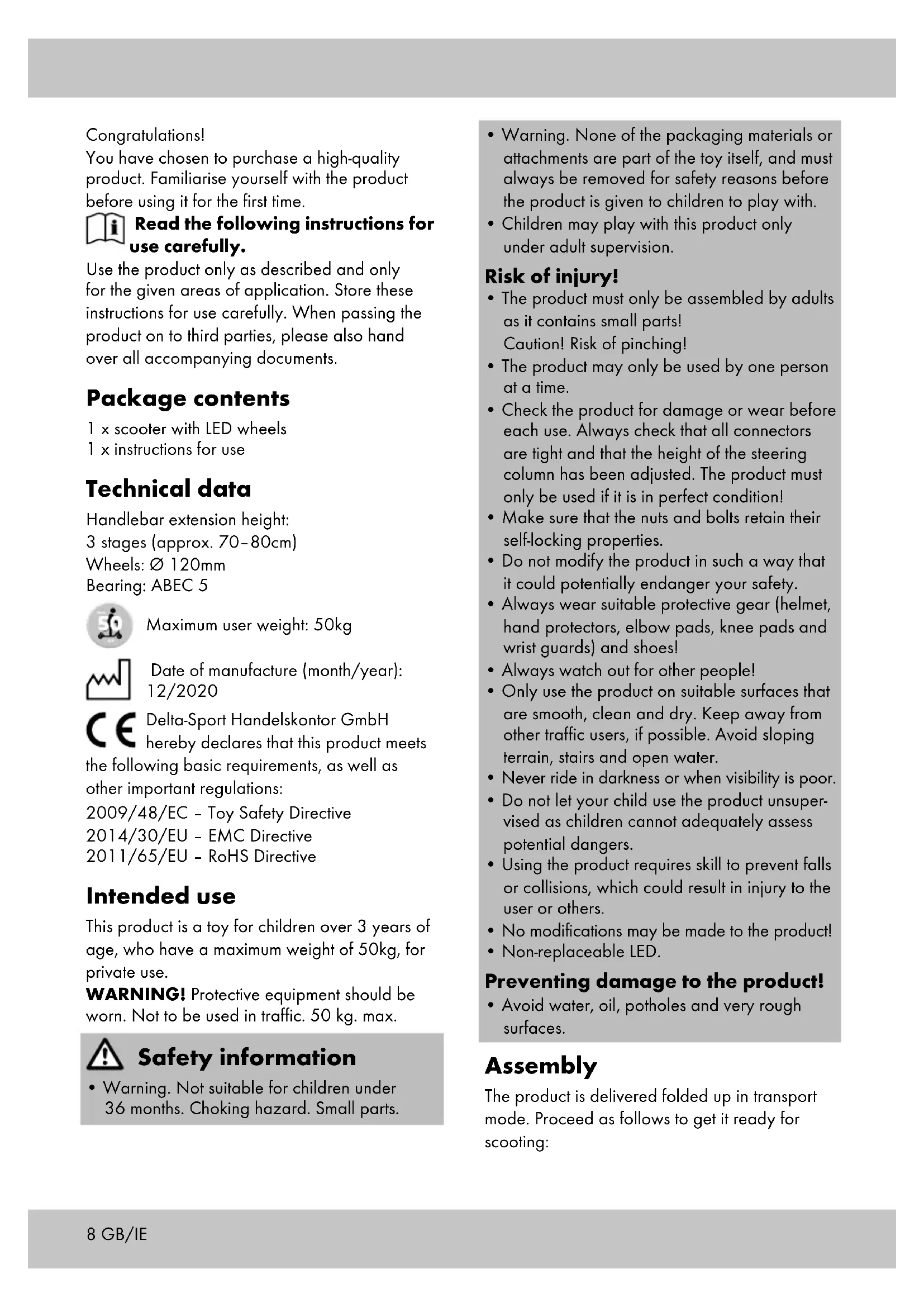 CE Delta-Sport Handelskontor GmbH hereby declares that this product meets