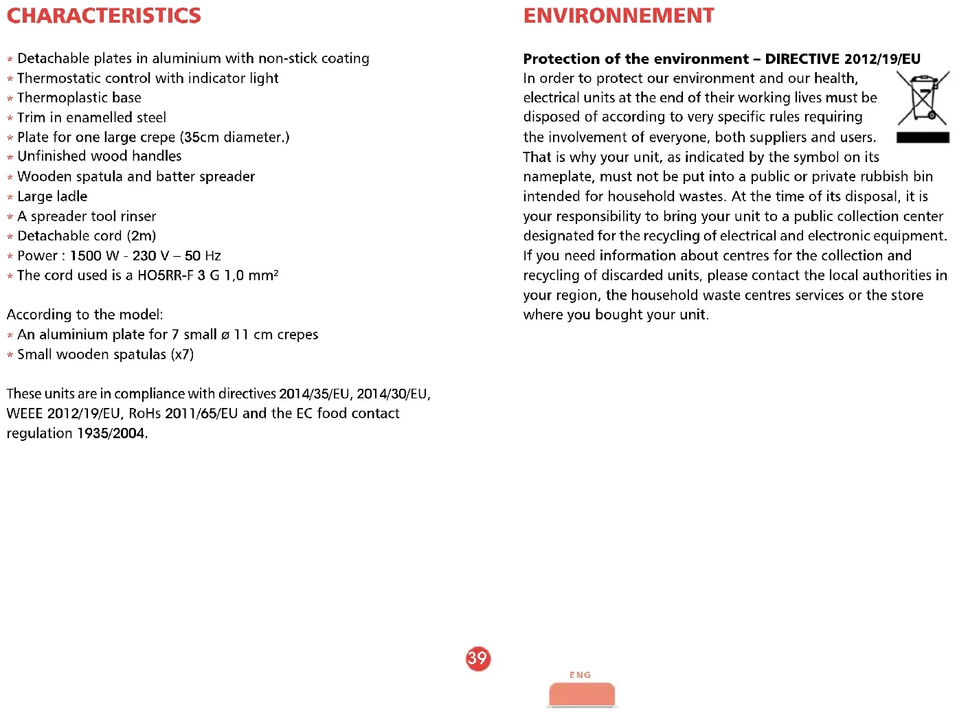 - Detachable aluminium plate for one large crepe (35cm diameter)