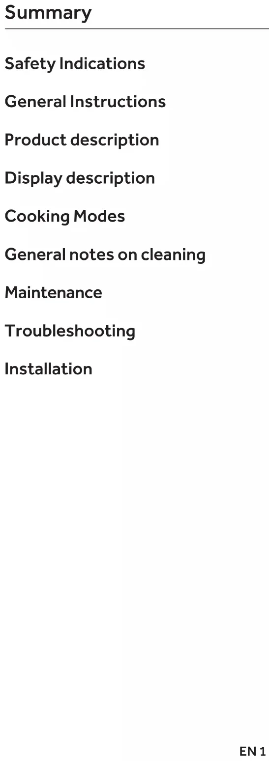 - Do not use rough or abrasive materials or sharp metal scrapers to clean the oven door glasses, as they can scratch the surface Safety IndicationsEN 3 and cause the glass to shatter.