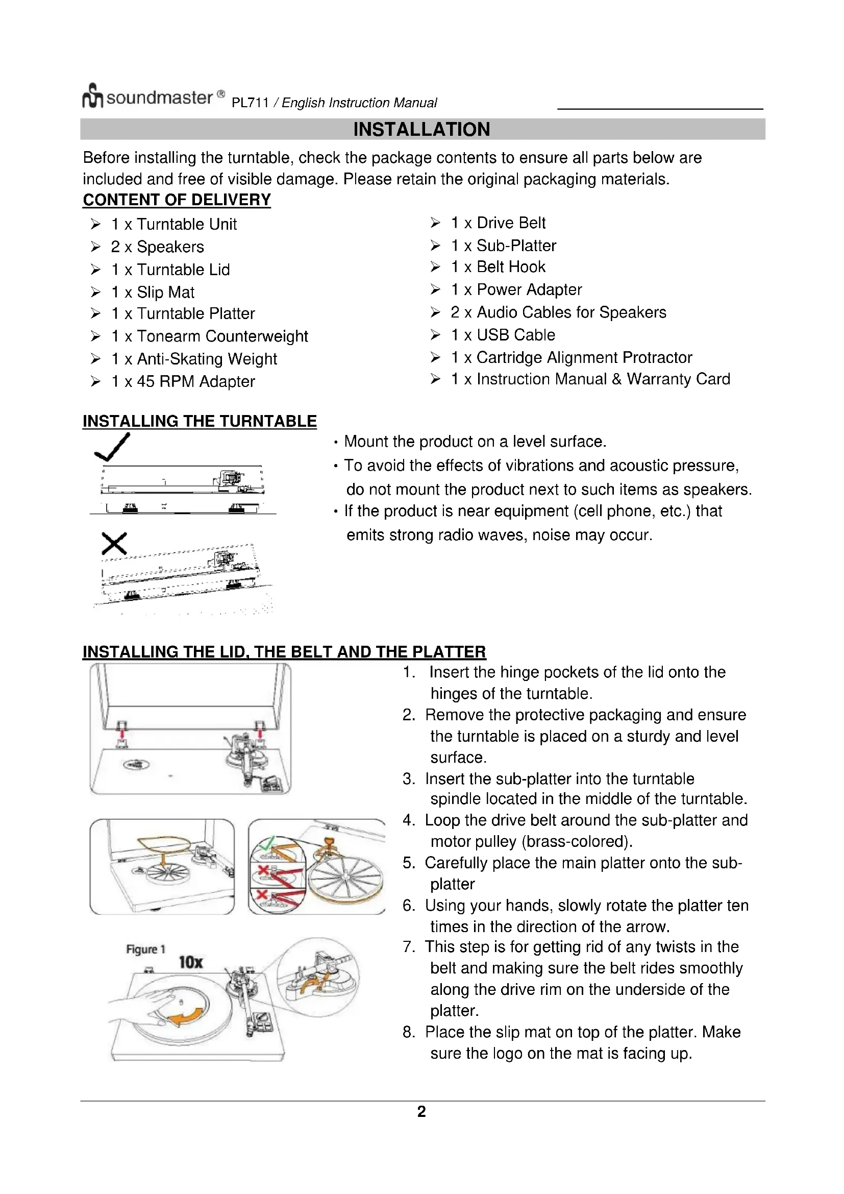 Download the instructions for your Turntable in PDF format for free! Find your manual PL711 - Soundmaster and take your electronic device back in hand. On this page are published all the documents necessary for the use of your device. PL711 by Soundmaster.
