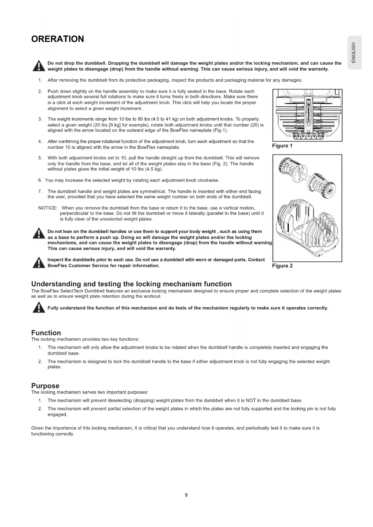 Thanks for choosing BowFlex SelectTech 1090i Dumbbell as your fitness equipment. We are sincerely encourage you to read through this Owner's manual carefully before the assembling of your equipment started, especially of below WARNINGS! WARNINGS WILL REDUCE THE RISK OF BURNS, FIRE, ELECTRICAL SHOCK OR INJURY TO PERSONS.
