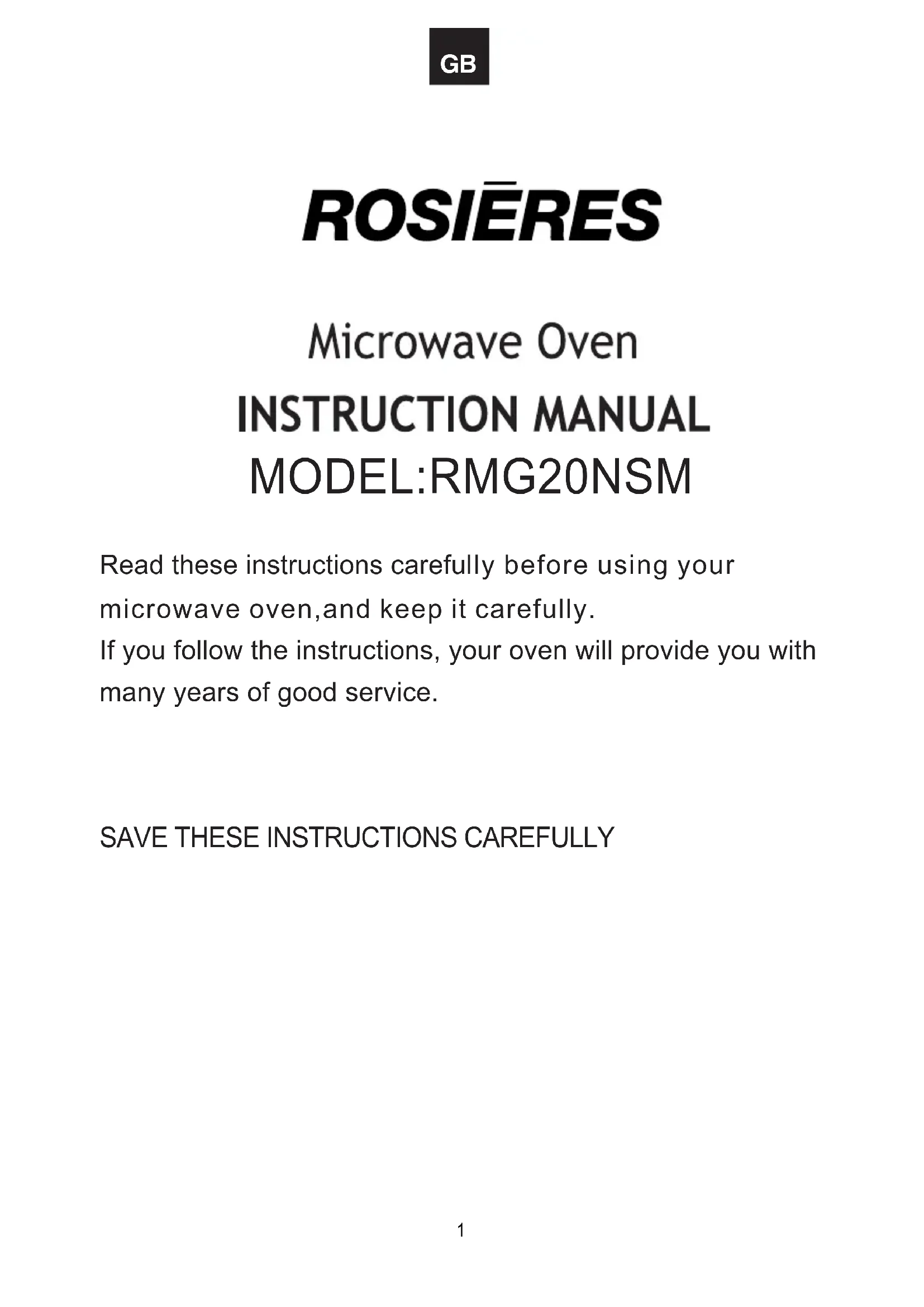 RMG20NSM - Microwave Oven ROSIERES - Free user manual and instructions