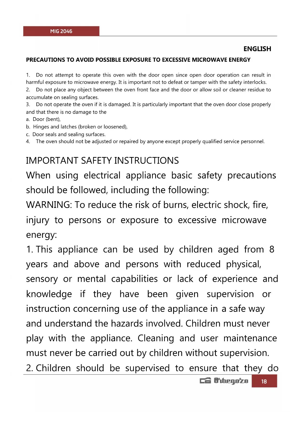 2. Children should be supervised to ensure that they doMIG 2046