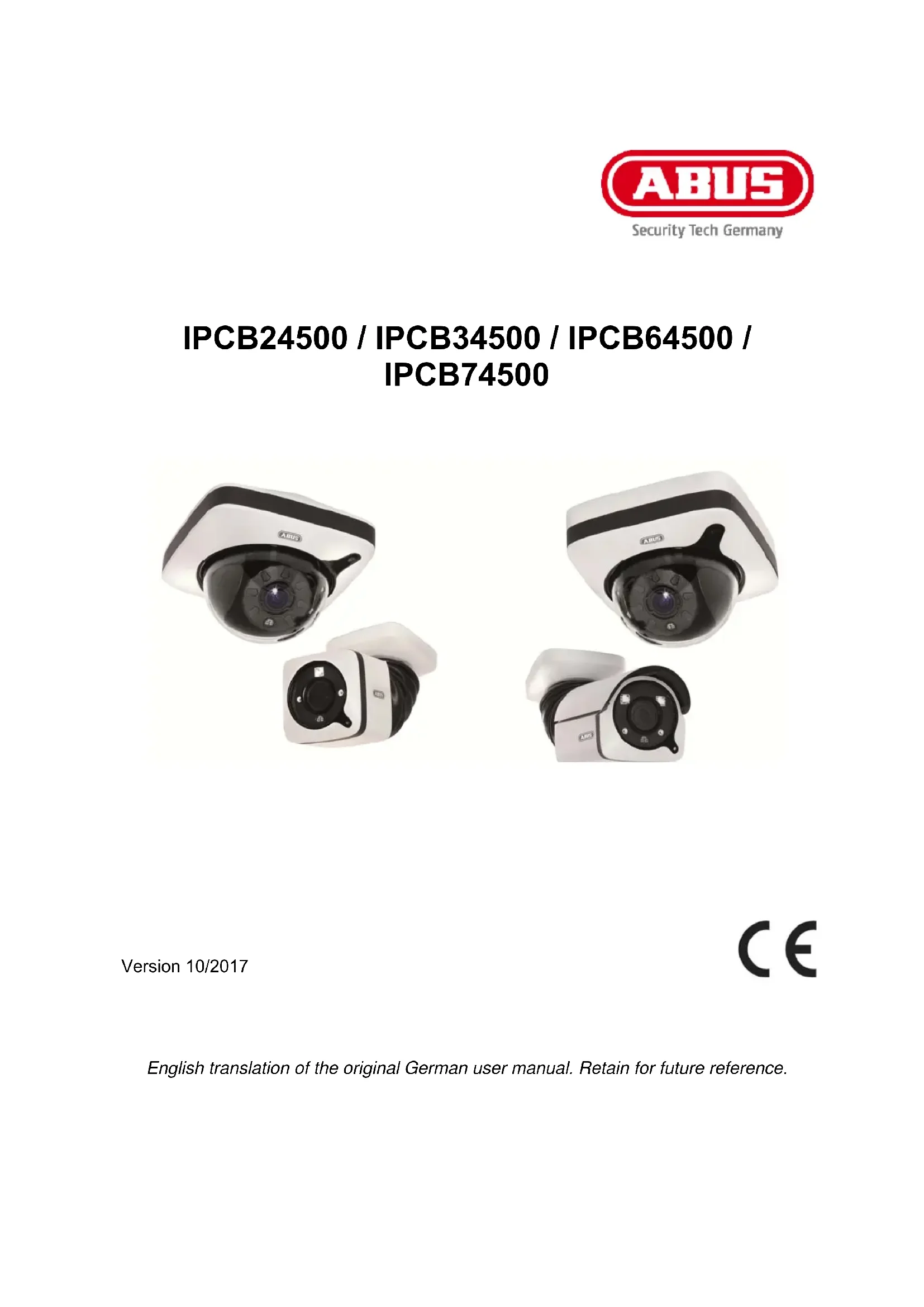 Dear customer, Thank you for purchasing this product. IPCB24500 This device complies with the requirements of the following EU directives: the EMC Directive 2014/30/EU and the RoHS Directive 2011/65/EU. The full EU Declaration of Conformity text can be found at: www.abus.com/product/IPCB24500 IPCB34500 This device complies with the requirements of the following EU directives: the EMC Directive 2014/30/EU and the RoHS Directive 2011/65/EU. The full EU Declaration of Conformity text can be found at: www.abus.com/product/IPCB34500 IPCB64500 This device complies with the requirements of the following EU directives: the EMC Directive 2014/30/EU and the RoHS Directive 2011/65/EU. The full EU Declaration of Conformity text can be found at: www.abus.com/product/IPCB64500 IPCB74500 This device complies with the requirements of the following EU directives: the EMC Directive 2014/30/EU and the RoHS Directive 2011/65/EU. The full EU Declaration of Conformity text can be found at: www.abus.com/product/IPCB74500