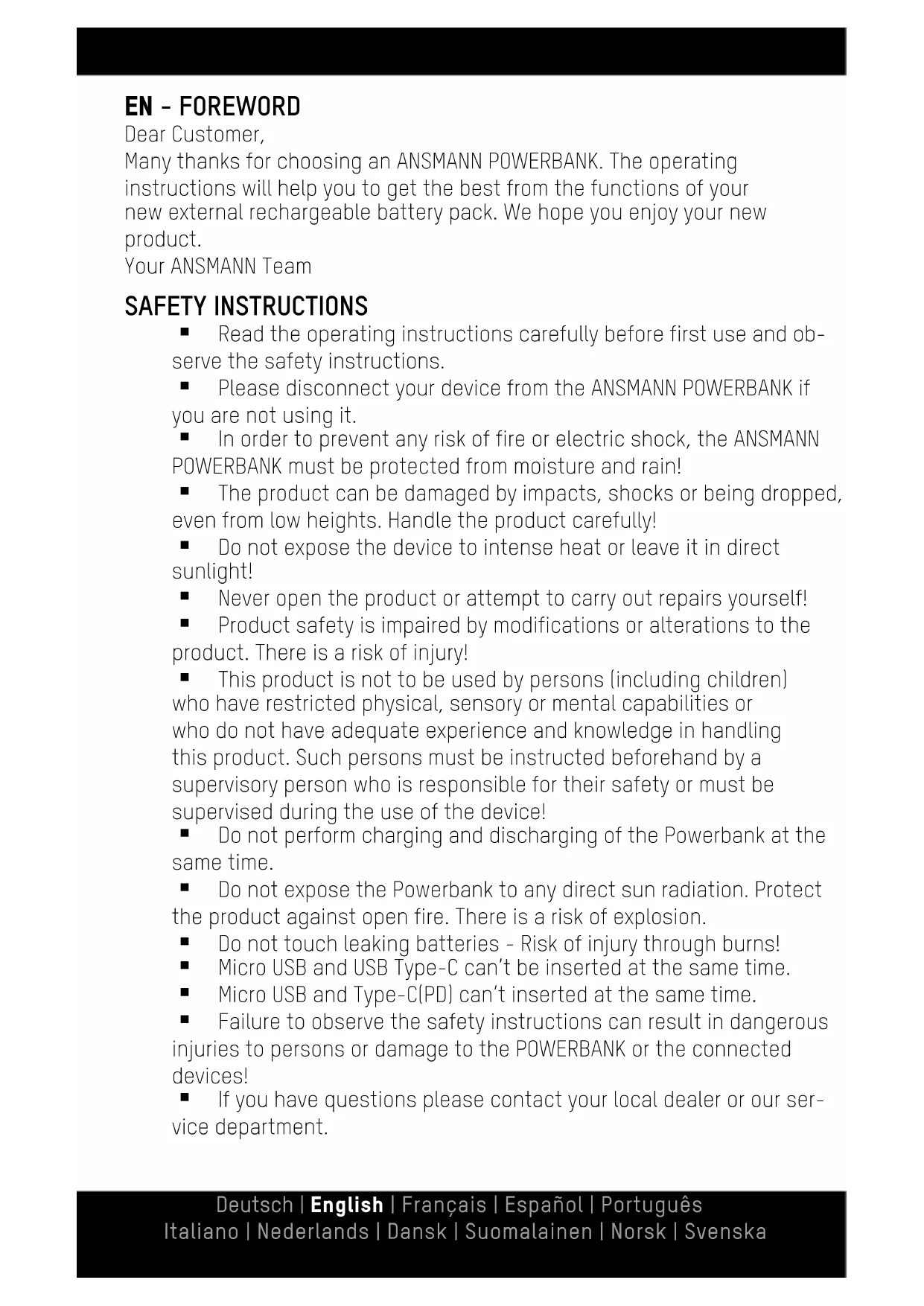 USER MANUAL Powerbank 20.0 ANSMANN