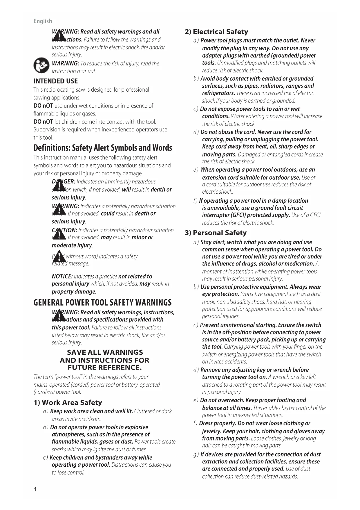 SAVE ALL WARNINGS AND INSTRUCTIONS FOR FUTURE REFERENCE.