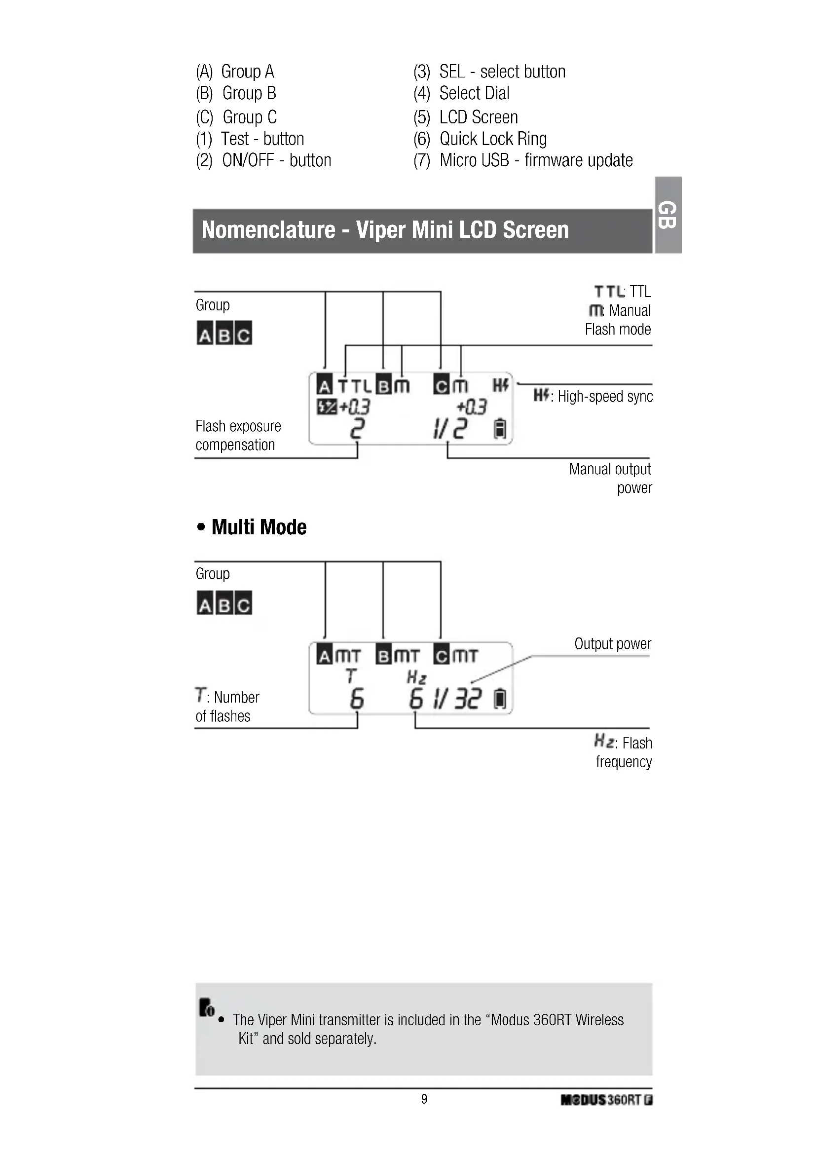 - The Viper Mini transmitter is included in the “Modus 360RT Wireless Kit” and sold separately.GB