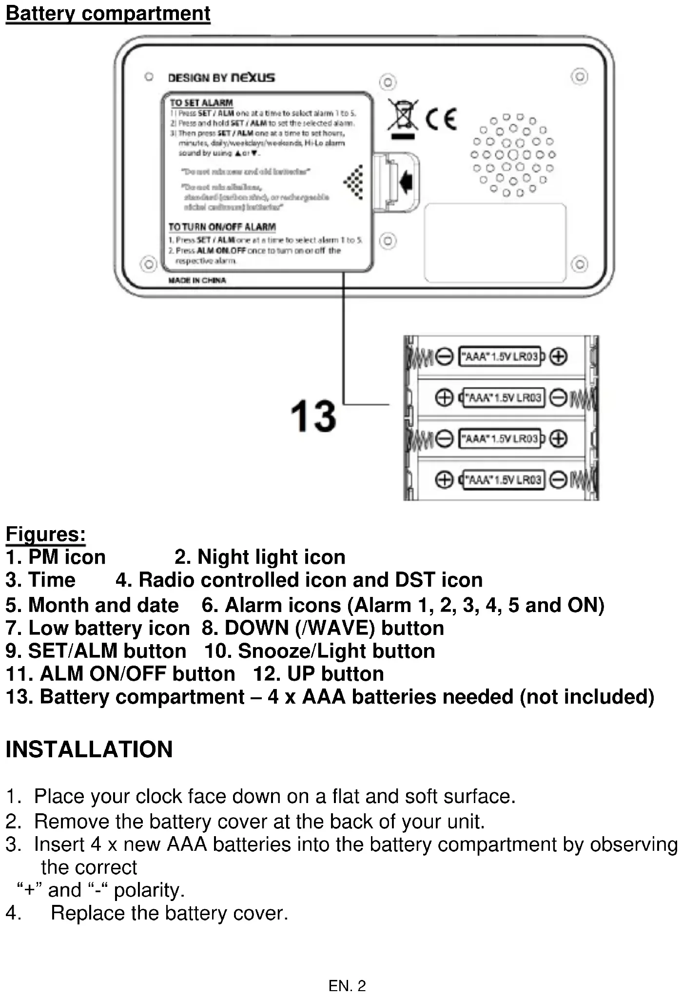 ButtonsEN. 2 Battery compartment