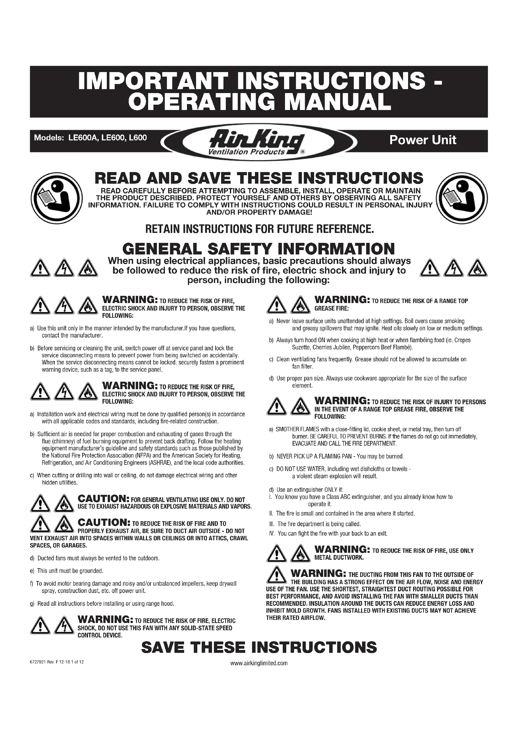 www.airkinglimited.com6727921 Rev. F 12-18 1 of 12 Power Unit Models: LE600A, LE600, L600