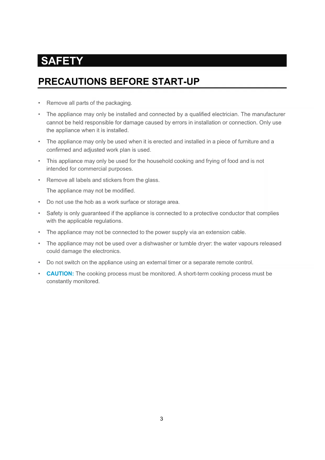 - Do not use any pots or pans with unpolished or damaged bases (e.g. made of cast iron). These can scratch the glass ceramic panels.
