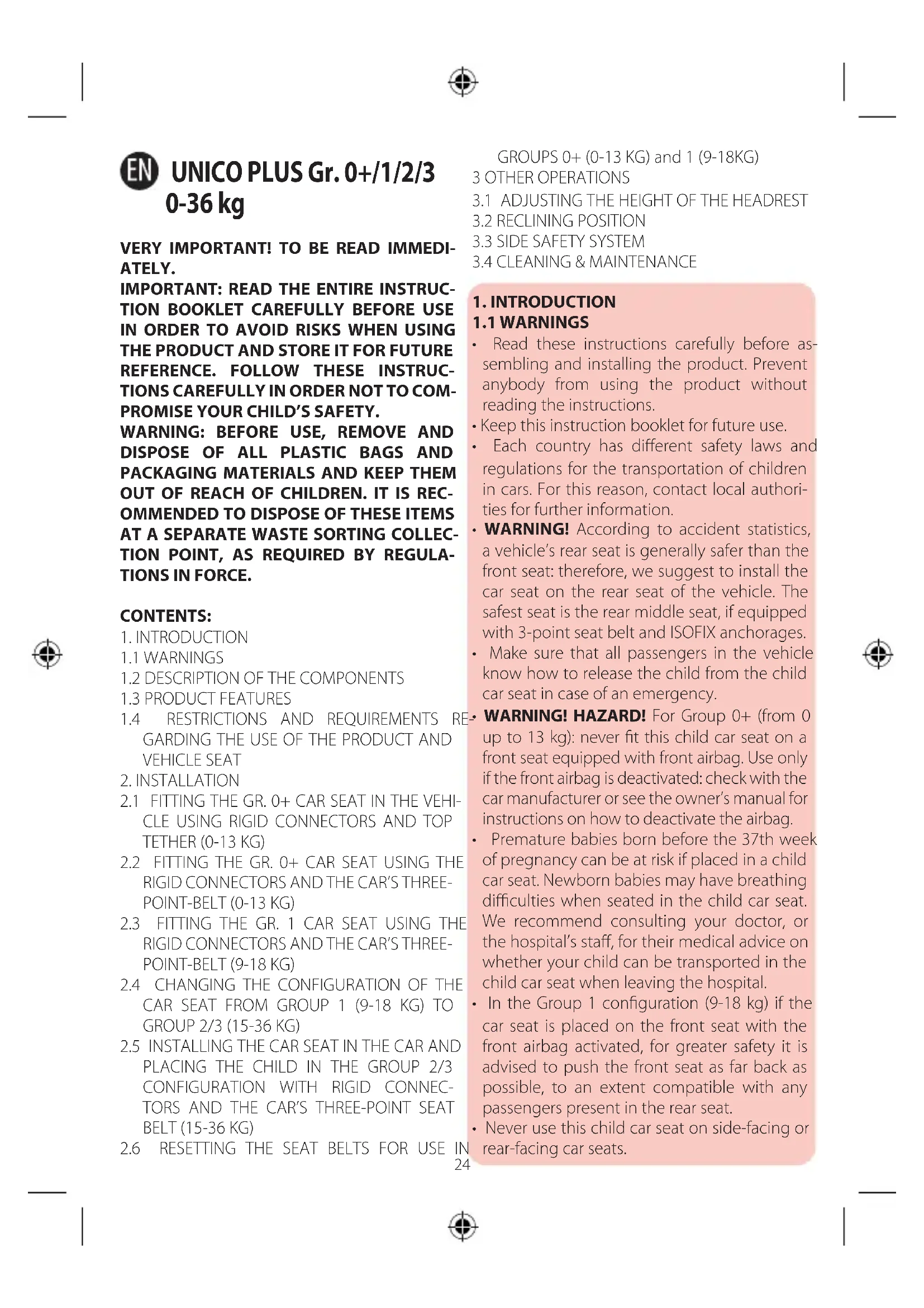 Unico Plus - Car seat CHICCO - Free user manual and instructions