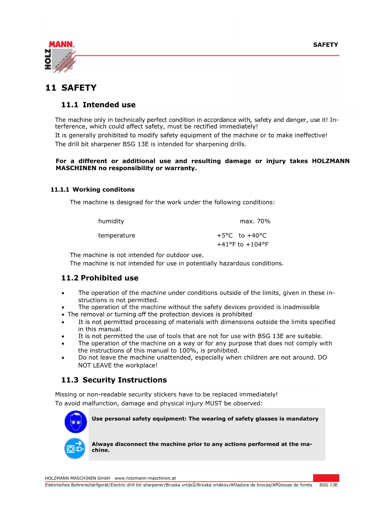Despite all the safety devices and remains her good common sense and your appropriate technical qualification / training on the operation of a machine such as the BSG 13E of the most important safety factor!