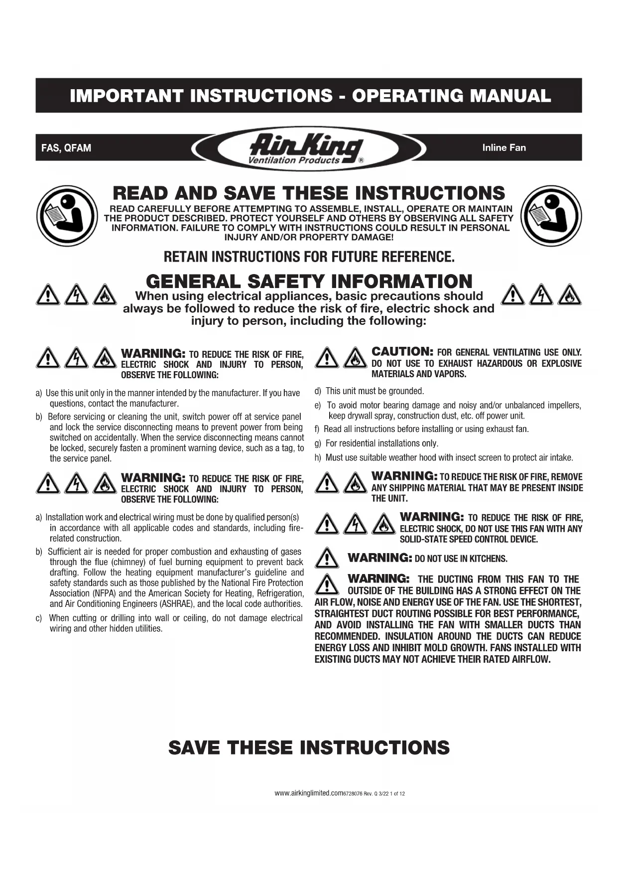 www.airkinglimited.com6728076 Rev. Q 3/22 1 of 12Inline Fan FAS, QFAM