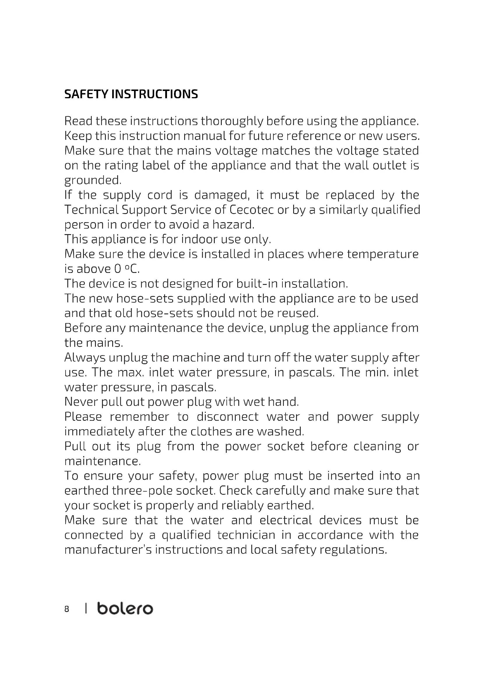 Bolero DressCode 9200 - Washing machine CECOTEC - Free user manual and instructions