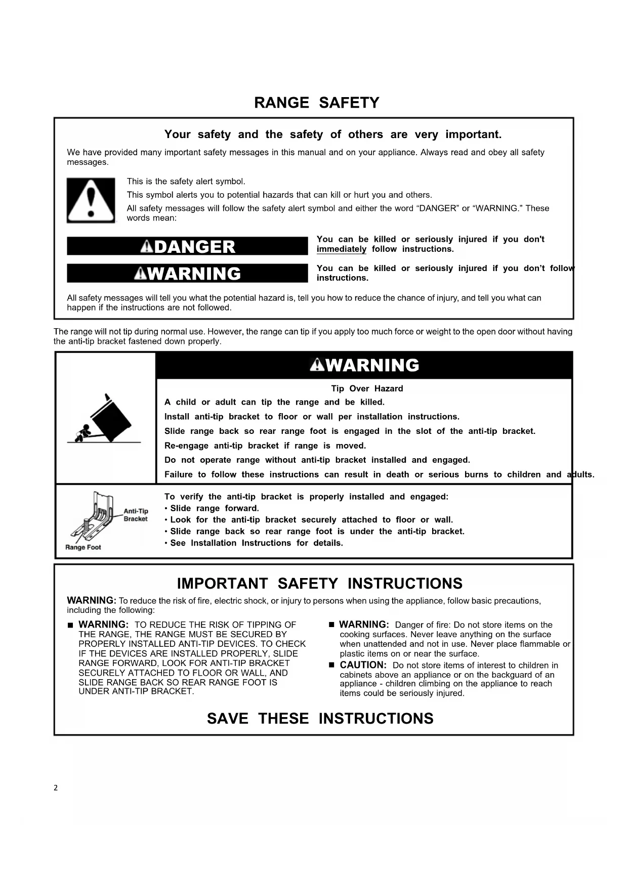 the “Verify Anti-Tip Bracket Is Installed and Engaged” section.