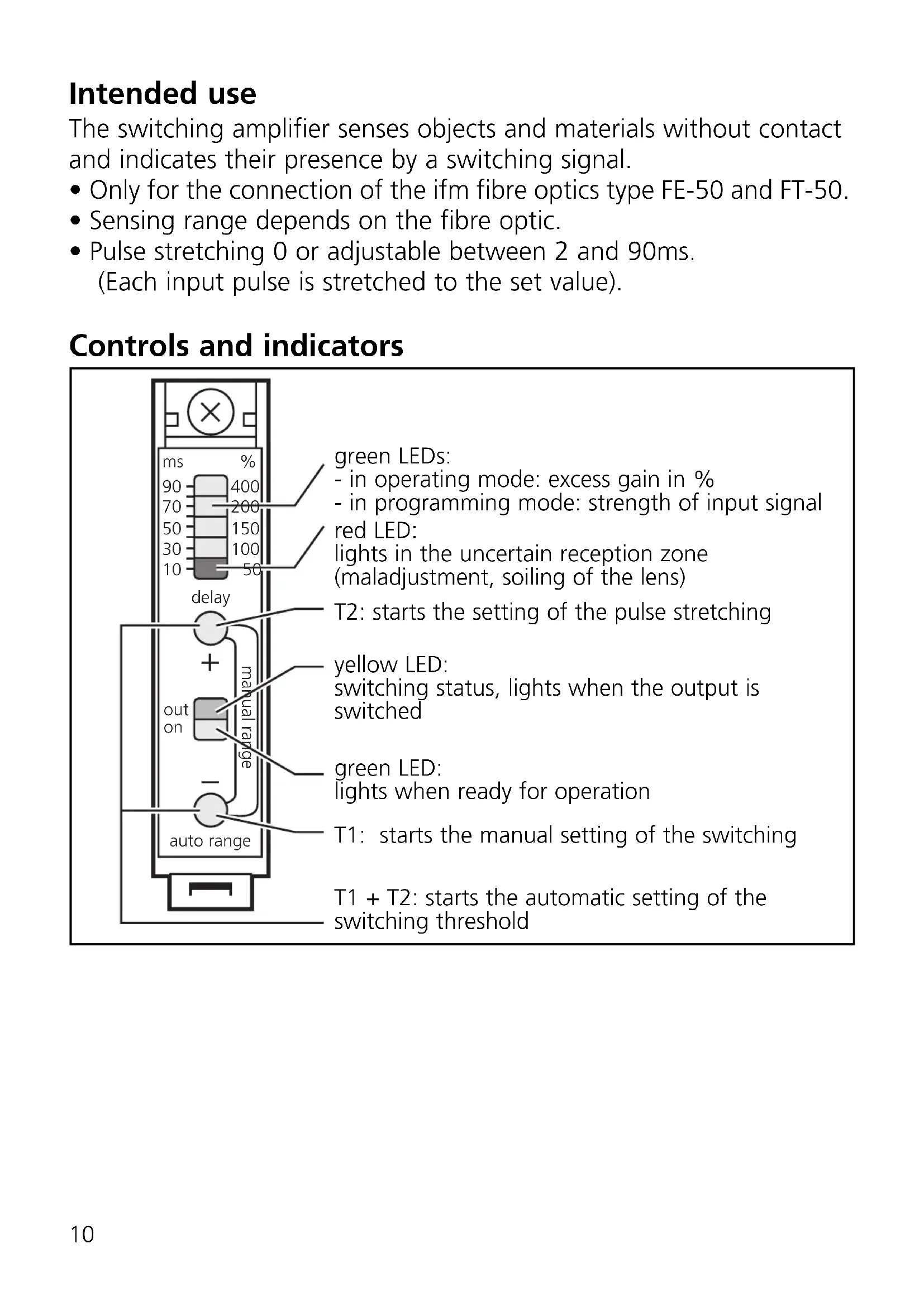 - Diffuse reflection fibre (FT ...) and through-beam fibre (FE ...) The unit detects input signals of various intensity in any sequence and calculates the optimum switching threshold.