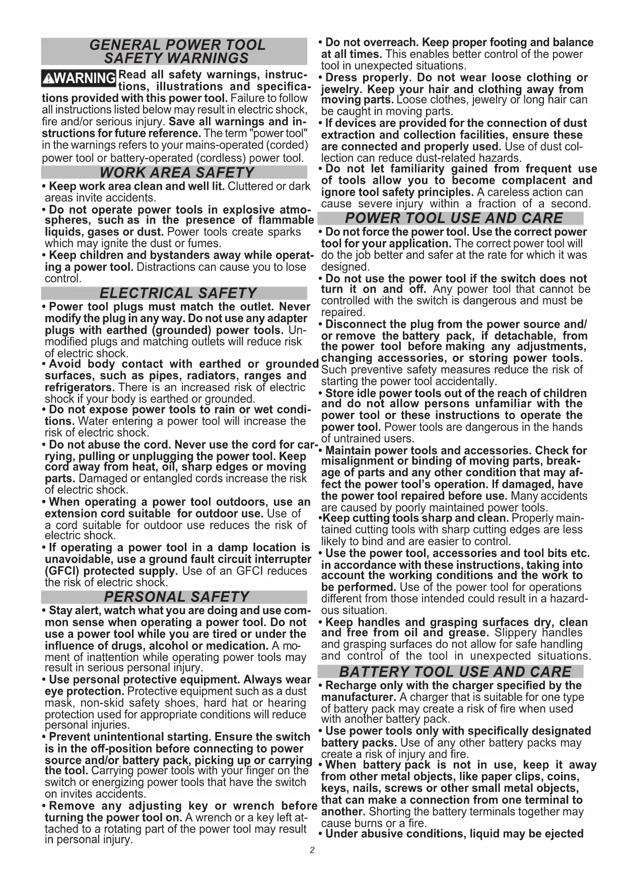 BATTERY TOOL USE AND CARE