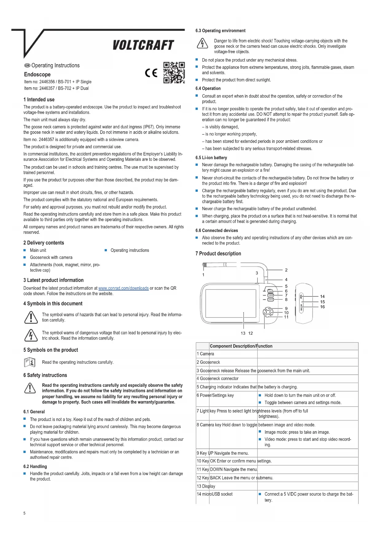 Download the instructions for your Endoscope in PDF format for free! Find your manual BS702SE - VOLTCRAFT and take your electronic device back in hand. On this page are published all the documents necessary for the use of your device. BS702SE by VOLTCRAFT.