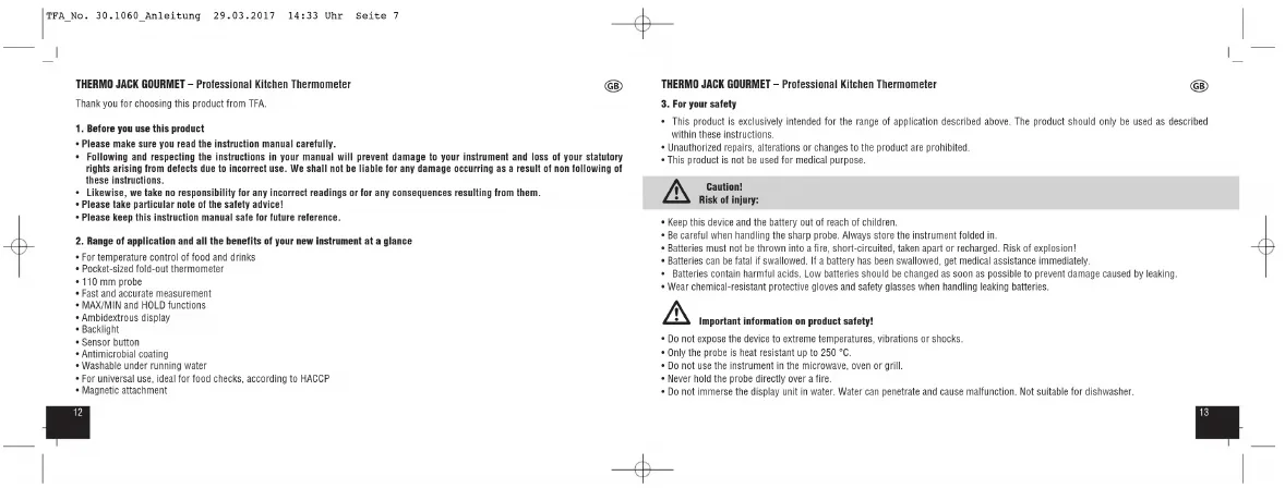 30.1060.05 - Thermometer TFA - Free user manual and instructions