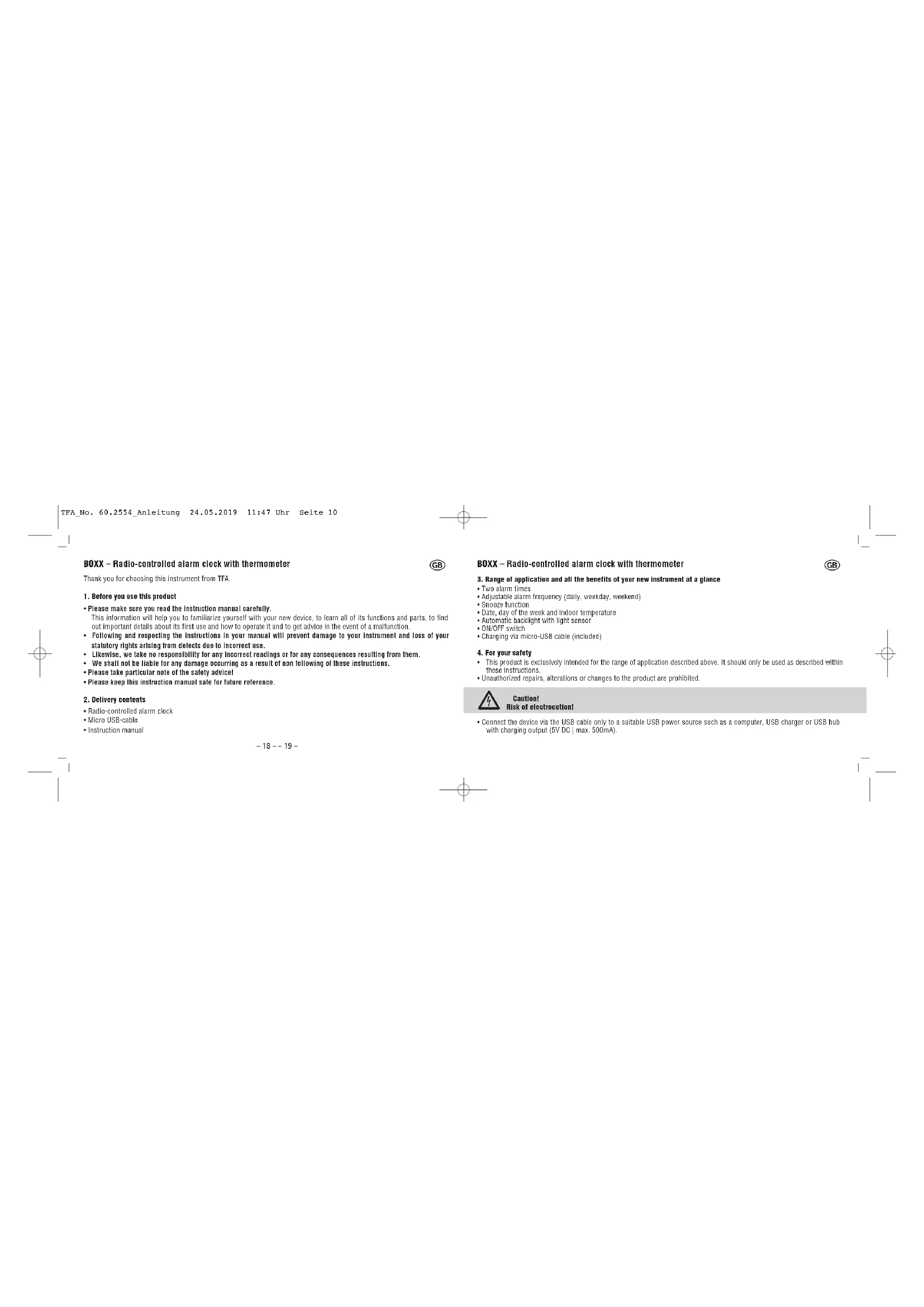 - Instruction manual BOXX – Radio-controlled alarm clock with thermometer