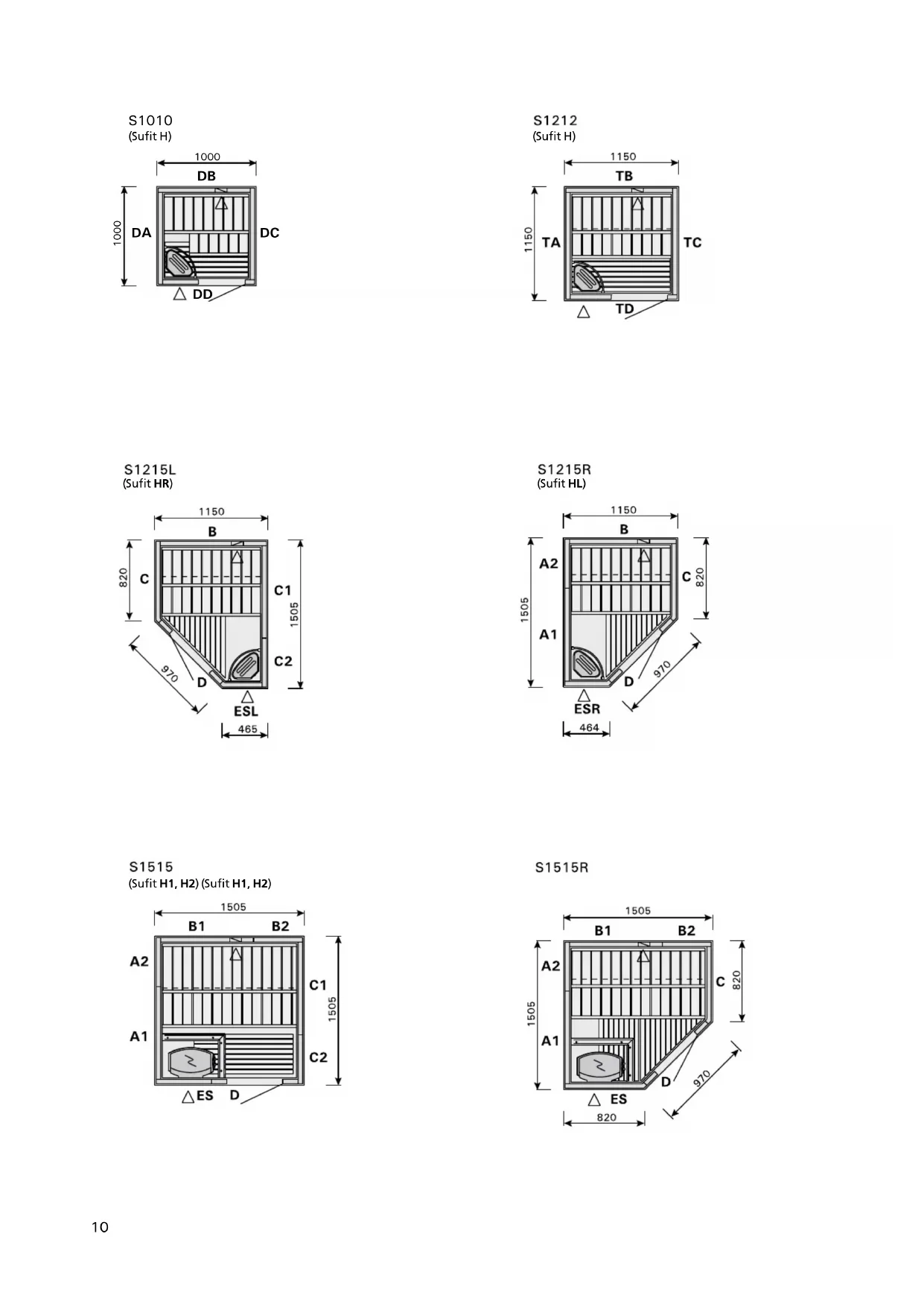 Note! When you are assembling the sauna type S1010, the benches should be positioned inside the sauna itself by passing them over the walls before the ceiling is actually installed, as they can not be turned once inside.