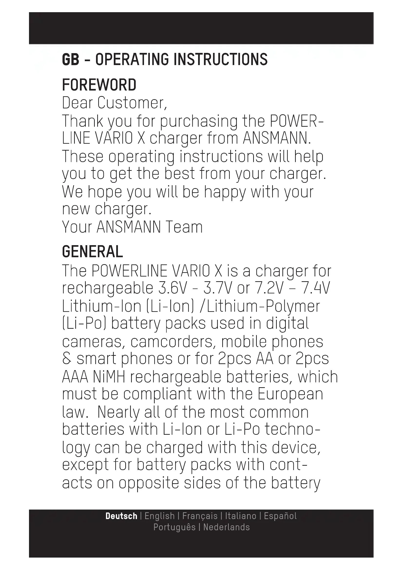 USER MANUAL Powerline Vario X ANSMANN