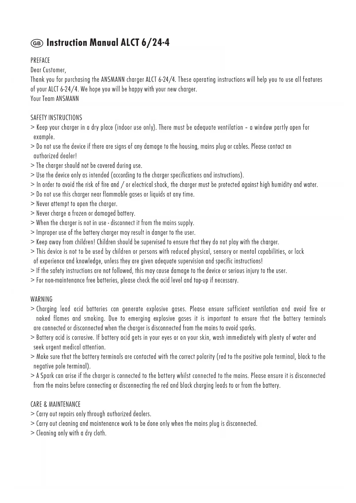 Download the instructions for your Battery charger in PDF format for free! Find your manual ALCT 6244 - ANSMANN and take your electronic device back in hand. On this page are published all the documents necessary for the use of your device. ALCT 6244 by ANSMANN.