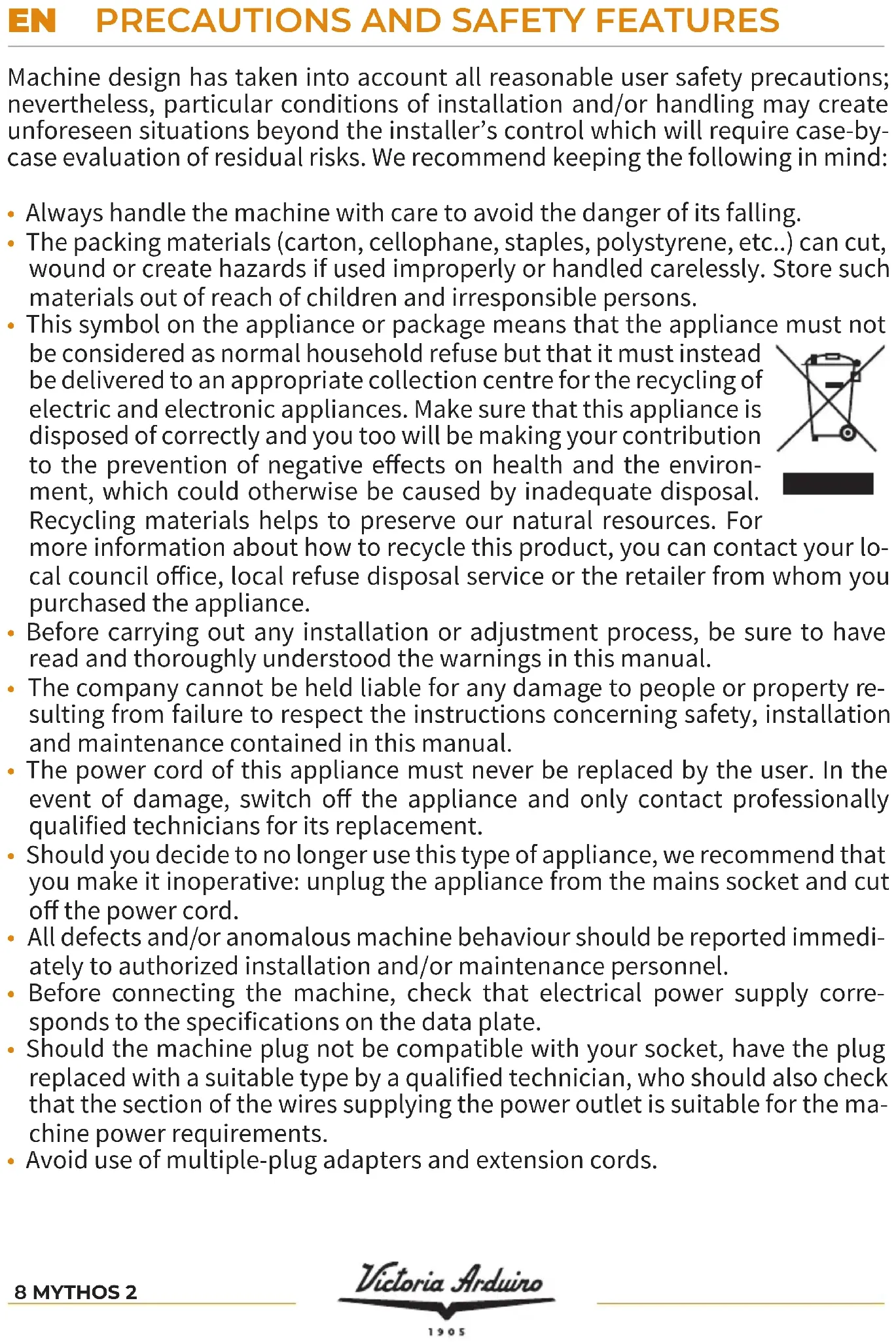 EN PRECAUTIONS AND SAFETY FEATURES9MYTHOS 2