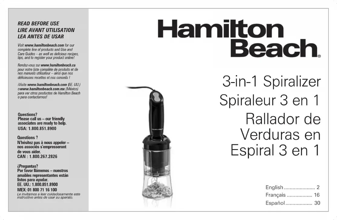 59998 - Spiraleur alimentaire HAMILTON BEACH - Free user manual and instructions