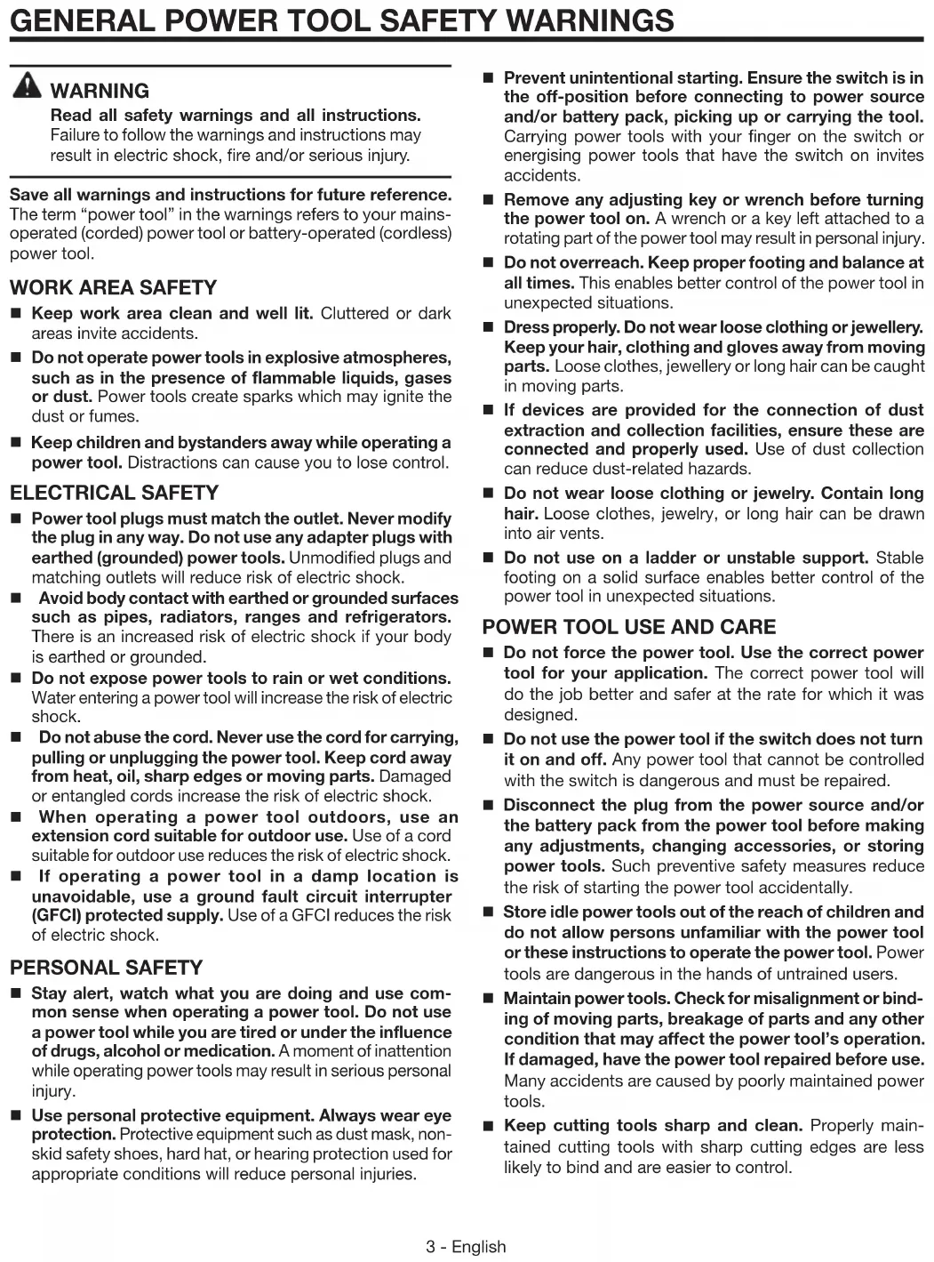 Save all warnings and instructions for future reference. The term “power tool” in the warnings refers to your mains- operated (corded) power tool or battery-operated (cordless) power tool.