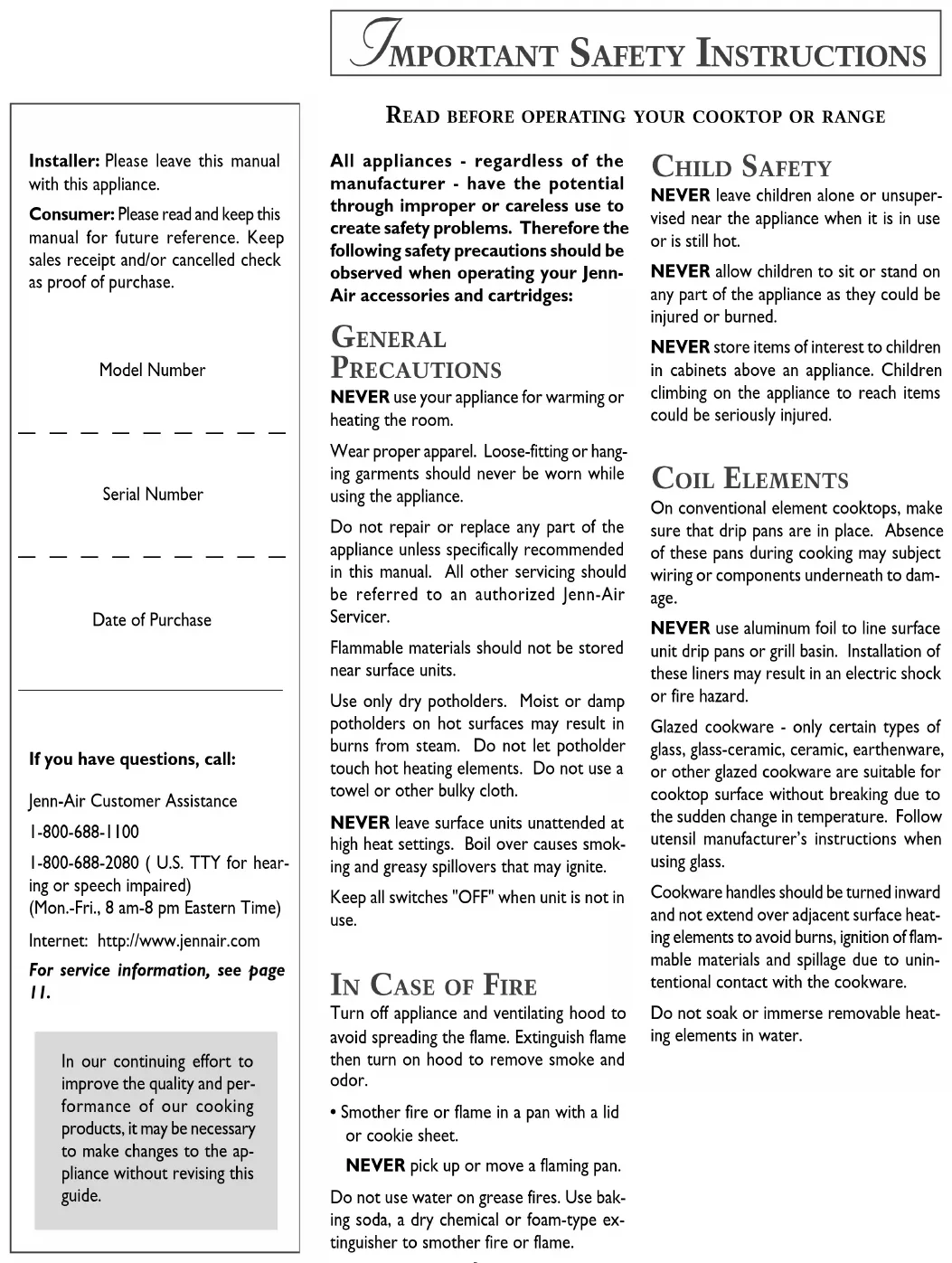 In our continuing effort to improve the quality and performance of our cooking products, it may be necessary to make changes to the appliance without revising this guide.