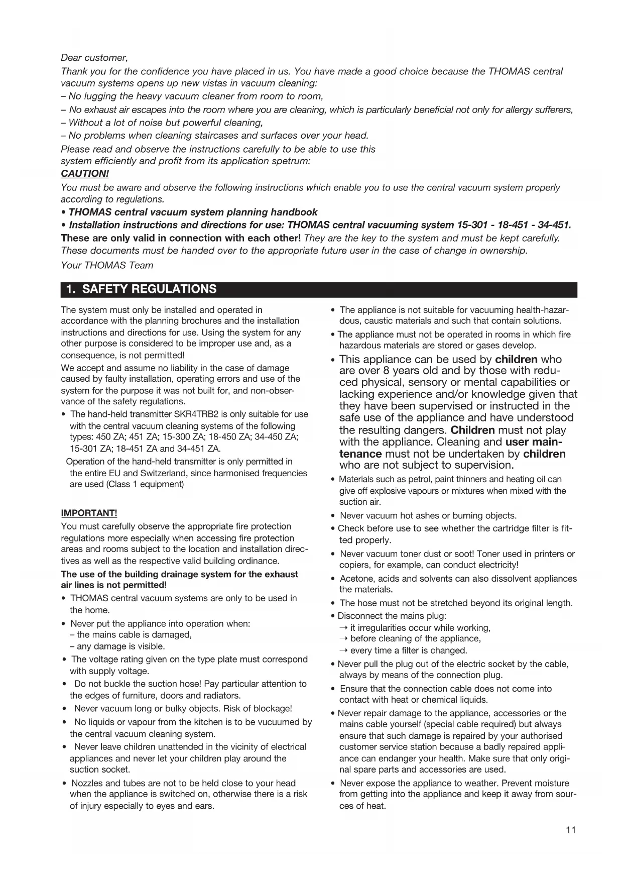 - Installation instructions and directions for use: THOMAS central vacuuming system 15-301 - 18-451 - 34-451. These are only valid in connection with each other! They are the key to the system and must be kept carefully. These documents must be handed over to the appropriate future user in the case of change in ownership. Your THOMAS Team