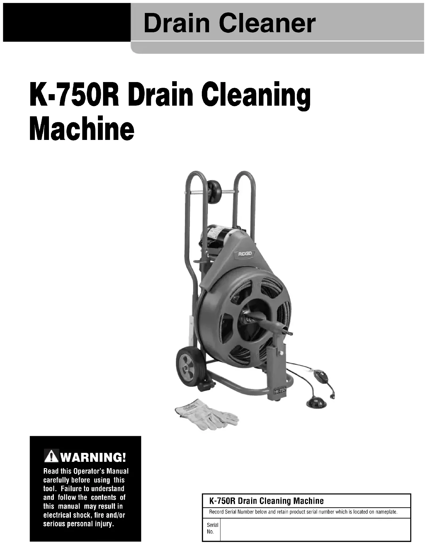 - Have your power tool serviced by a qualified repair person using only identical replacement parts. This will ensure that the safety of the power tool is maintained. Specific Safety Information WARNING This section contains important safety informa- tion that is specific to this tool. Read these precautions carefully before using the K-750R Drain Cleaning Machine to reduce the risk of electrical shock or other serious injury.